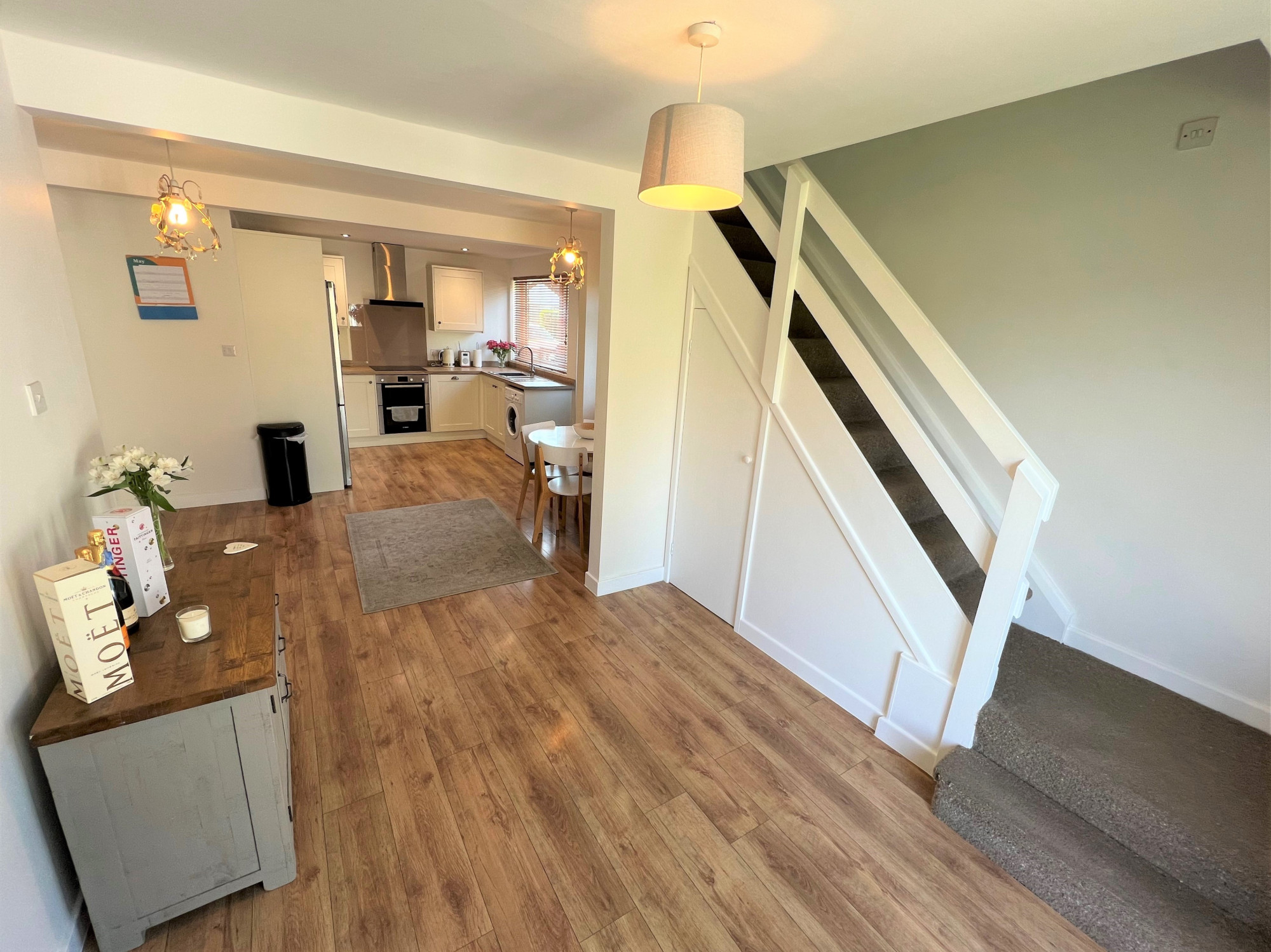 Entering this property offers a spacious living room with access to an open plan kitchen/diner.