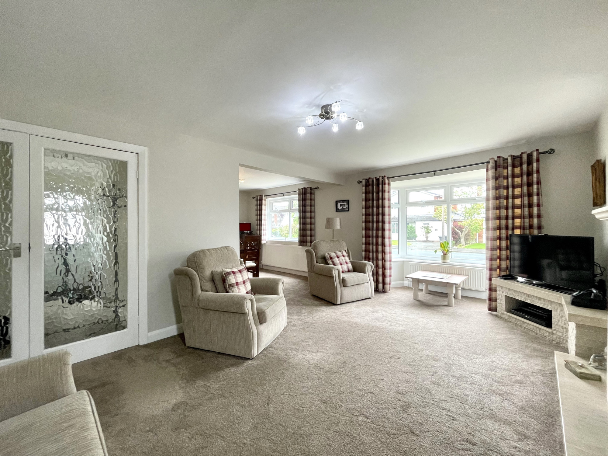 Upon entering, you're greeted by a spacious hall, with internal doors leading into all rooms. The lounge, positioned to the front of the property, is a spacious room and flooded with natural light, courtesy of a lovely bay window. Additionally, from the lounge, you have an opening into the dining room, cleverly enhancing the flow of the living space. The dining room is again of a great size, with plenty of space for a large dining table and chairs, the perfect spot for a dinner party with friends and family! The modern fitted kitchen is completed with integrated appliances, a range wall and base units providing ample storage and work surface facilities.