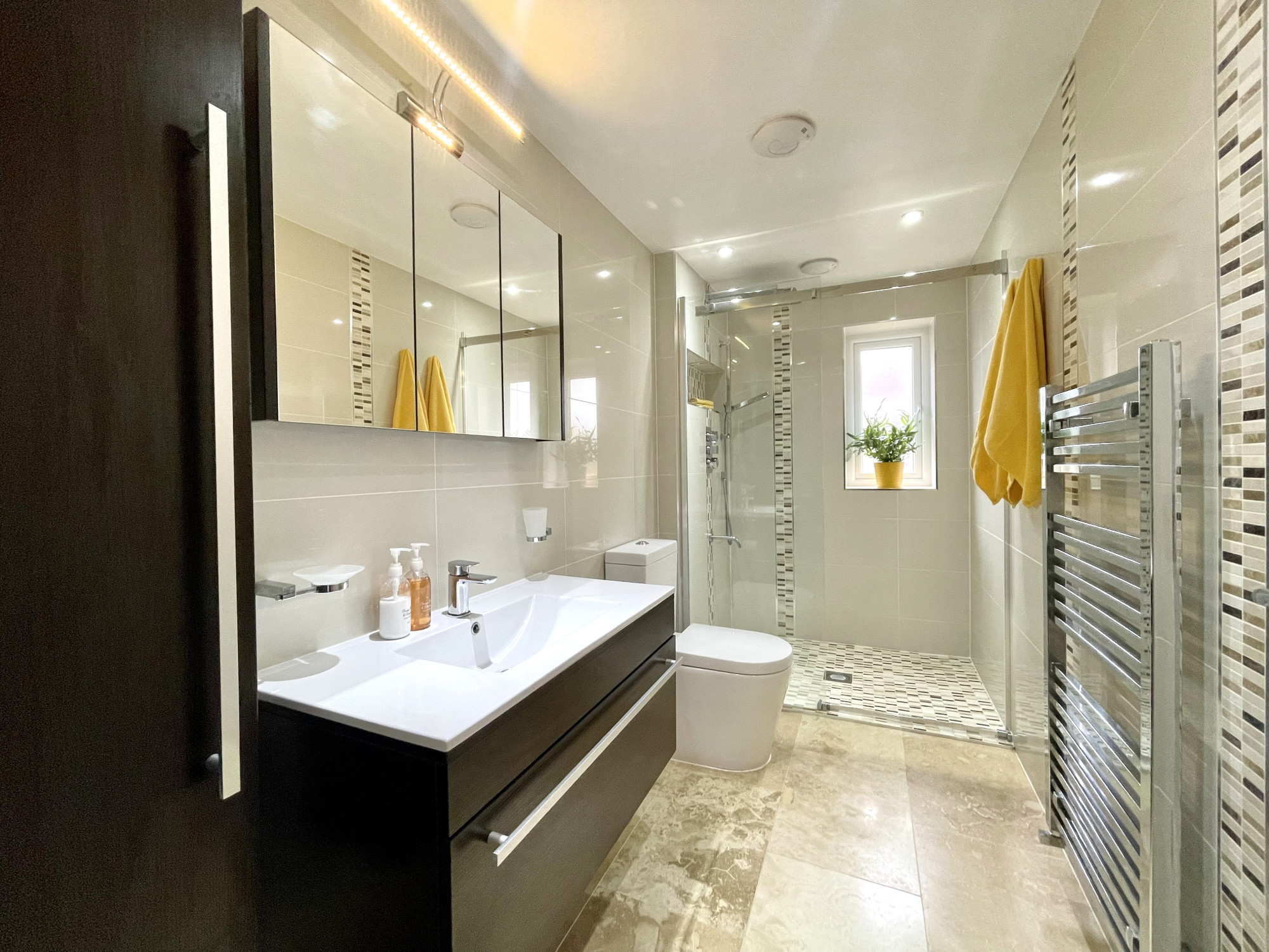 The layout works perfectly allowing for complete separation from the living accommodation and bedrooms. From the hall leads you down to the rear of the property where you have access to the three bedrooms and family bathroom. Bedrooms one benefits from fitted wardrobes and bedroom two houses an en-suite shower room. Bedroom three is a versatile space that can be tailored to suit various needs and preferences. All three double bedrooms are of a great size and complete with large windows, boasting a light and airy feel. Finally, the modern family bathroom is spacious in size, benefitingΒ from a walk-in shower, wash hand basin and a WC with a bidet.