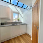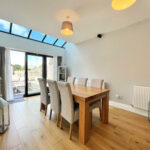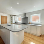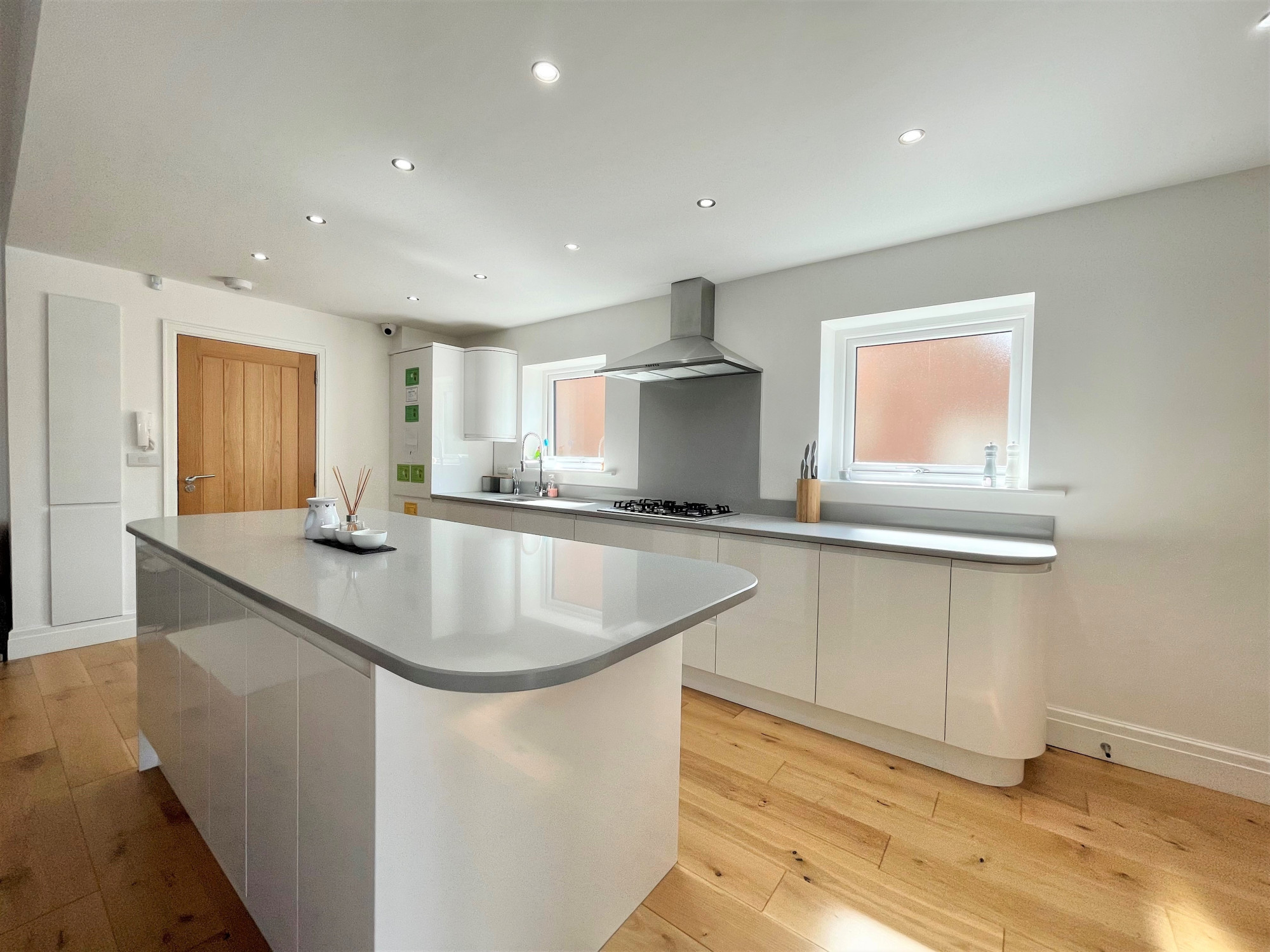 The lounge is a great size boasting high ceilings, gas fire and a large bay window to the front. It’s the perfect space to shut the door and relax from the open plan entertaining space to the rear! Thanks to the vast extension, a jaw dropping open plan kitchen/living/dining room has been cleverly created, providing for the modern-day family lifestyle, where family and entertainment sits central to all it offers. The fantastic space is complemented perfectly with bi-folding doors leading out to the rear patio area and swimming pool bringing the outside in. To the living area of the room there is ample space for seating, with a wood burning stove creating the perfect focal point. The modern and sleek fitted kitchen comes with a range of wall and base units, producing plenty of storage and houses integral appliances.