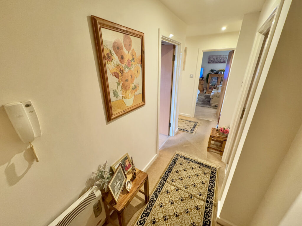 The secure communal entrance hallway with intercom system, provides added safety and convenience and leads to the welcoming private entrance hall that paved the way into the heart of the home. A bright and comfortable lounge seamlessly connects to the modern kitchen, designed for easy entertaining and relaxed everyday living. The kitchen is fitted with contemporary units and ample storage making it both stylish and practical. The private spaces offer two generously sized double bedrooms, ideal for families or professionals. A modern family bathroom features quality fixtures and fittings, including a bathtub with an overhead shower, a wash basin and WC.