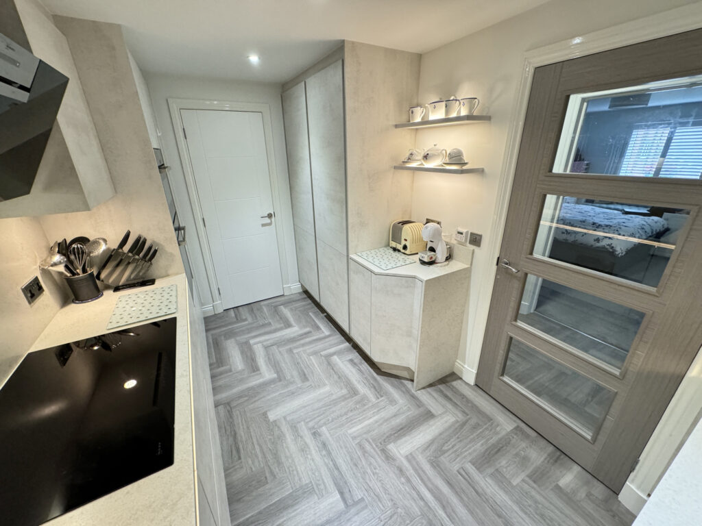 The expansive living area is designed for comfort and sophistication, featuring high-quality finishes and ample natural light, making it an ideal space for both relaxation and entertaining giving direct access out onto a delightful balcony perfect for sitting out and relaxing. The state-of-the-art German design and build kitchen is equipped with top-of-the-line Neff appliances, an instant hot boiling water Blanco tap and sleek cabinetry, offering a perfect blend of style and practicality for any culinary enthusiast. Additionally a walk in pantry gives space to house all you everyday household essentials.