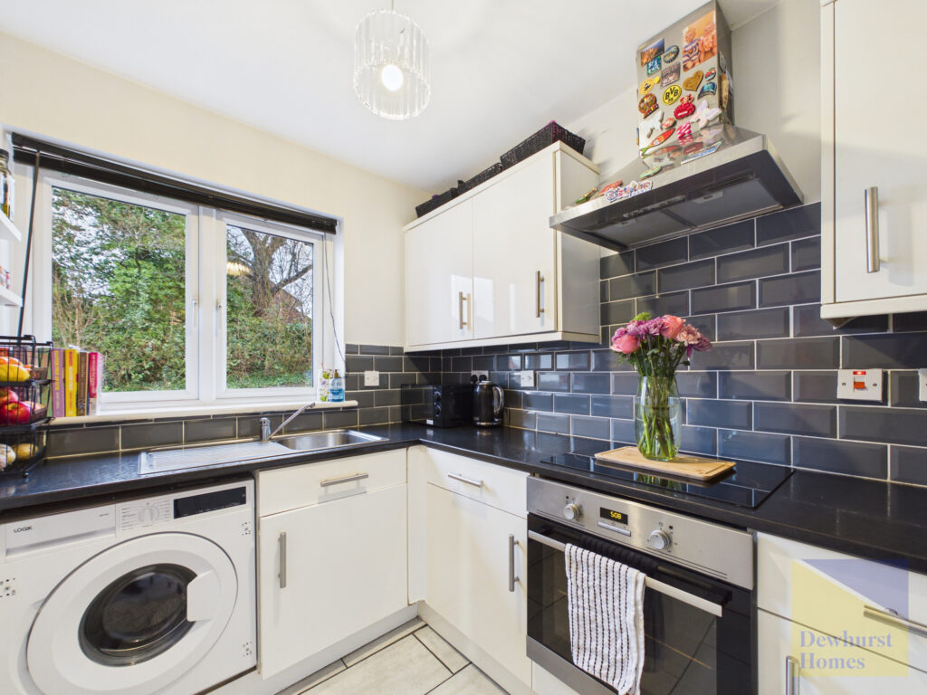 The property welcomes you with a bright entrance hallway featuring a cupboard housing the electric heating system and a burglar alarm control panel. The generous lounge provides a comfortable and stylish living space, complete with TV and telephone points, a radiator, and French doors opening onto the rear garden. Stairs rise from the lounge to the first-floor landing, with the added benefit of useful understairs storage. The modern kitchen is fitted with a comprehensive range of contemporary base and eye-level units and includes integrated appliances such as an oven, hob, extractor hood, dishwasher, washer/dryer, fridge and freezer. A convenient cloakroom with WC and wash hand basin completes the ground floor.