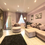 Upon entering, you are welcomed into a stunning lounge, tastefully decorated in soft pastel tones that create a warm and inviting atmosphere. The room benefits from attractive laminate flooring and a striking tall decorative radiator, adding a contemporary touch. Sliding doors lead through to the impressive kitchen dining room, forming the heart of the home and offering a fantastic space for both everyday living and entertaining.