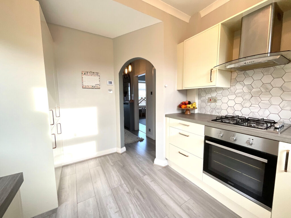 The kitchen is bright, airy, and fully fitted with high-quality appliances, including a dishwasher, washer-dryer, and fridge-freezer. With underfloor heating and a thoughtful layout, it’s a space that perfectly balances practicality and style.