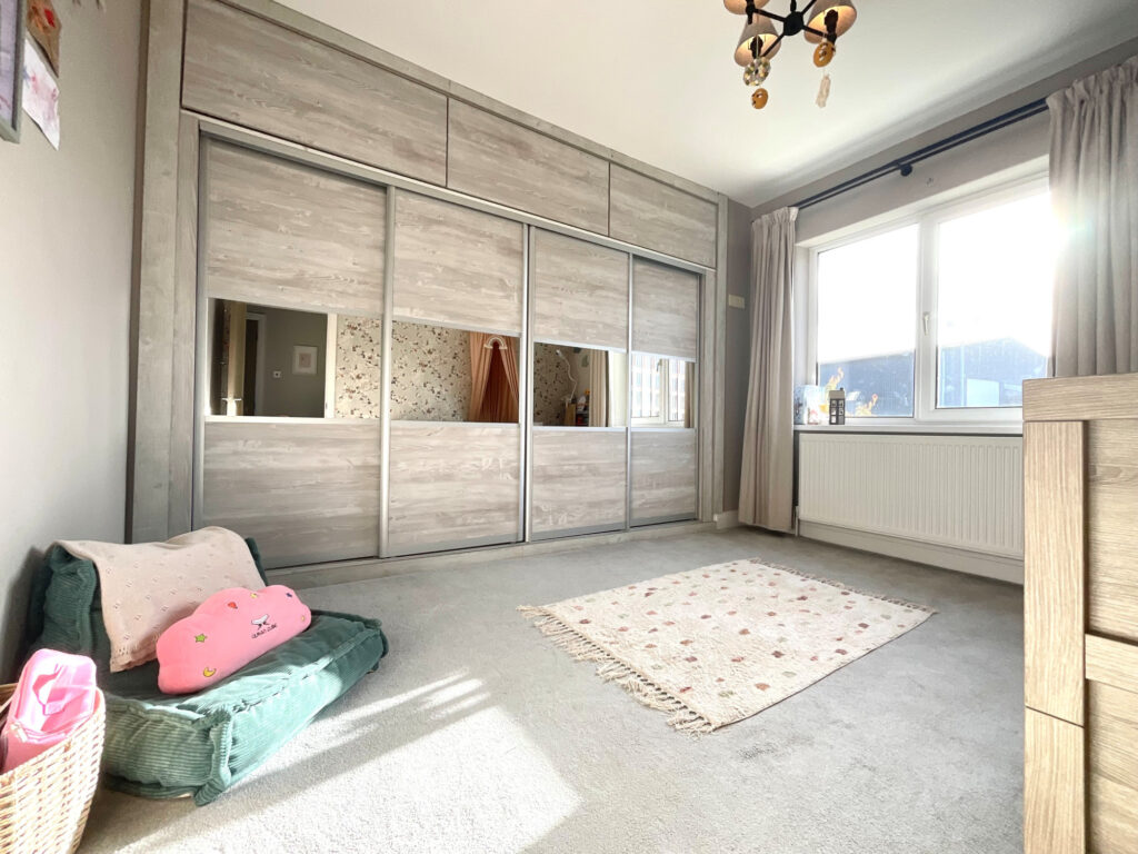 The second bedroom is particularly spacious and also features fitted modern wardrobes, offering plenty of storage.