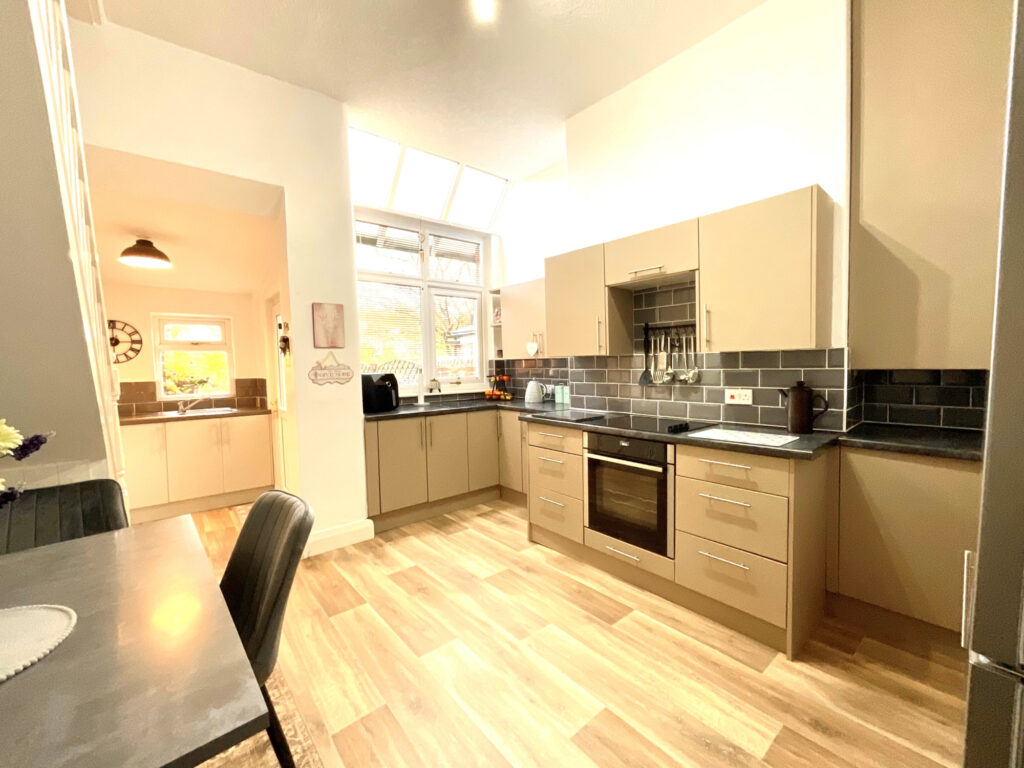 The heart of the home is the open-plan kitchen and dining room, designed with both functionality and style in mind. The kitchen offers generous storage and workspace, ideal for family living or entertaining. The extension provides a superb utility area, adding even more convenience and practicality to this already impressive space. Every detail has been carefully finished to a high standard, showcasing the property’s exceptional presentation.