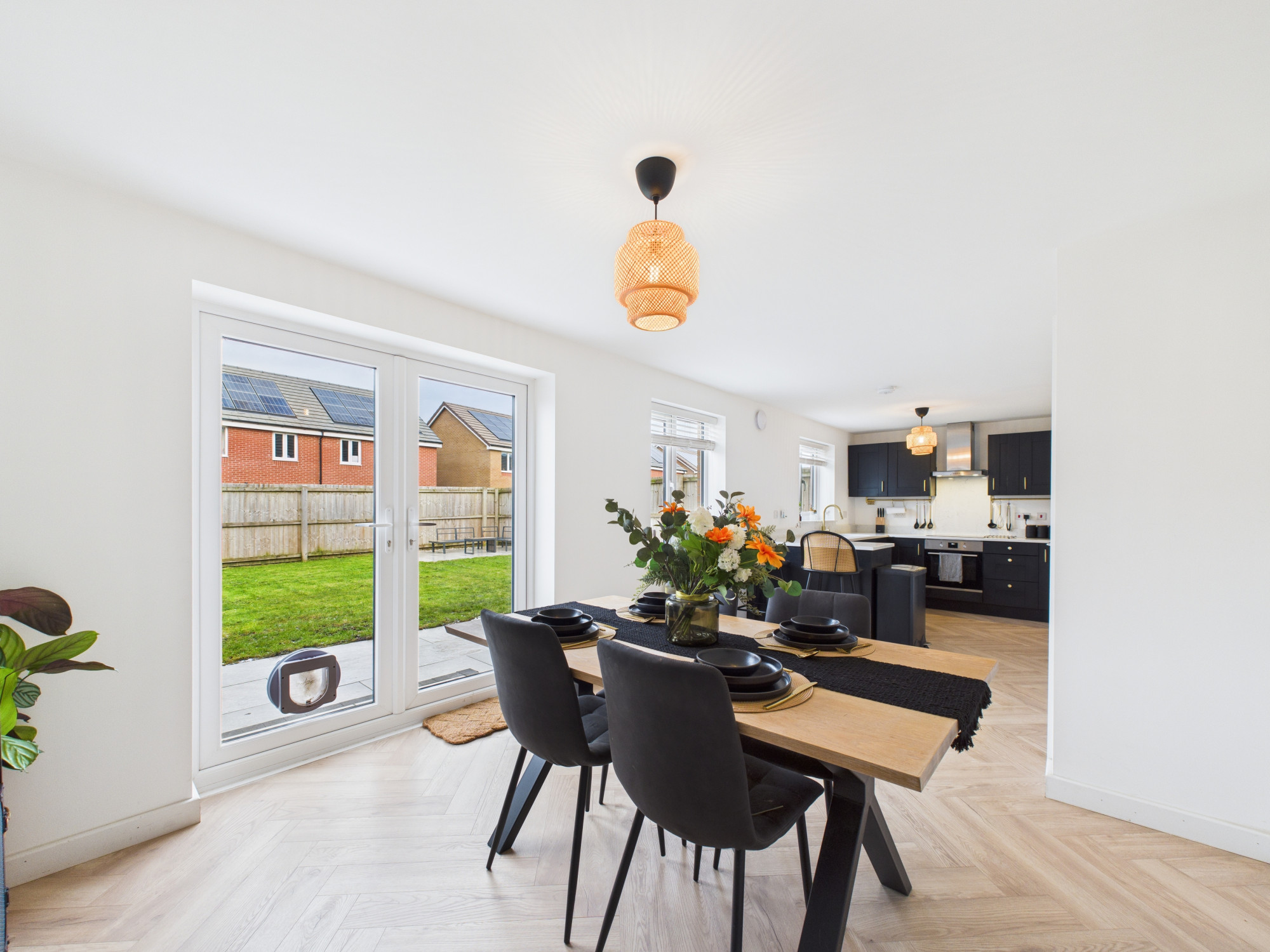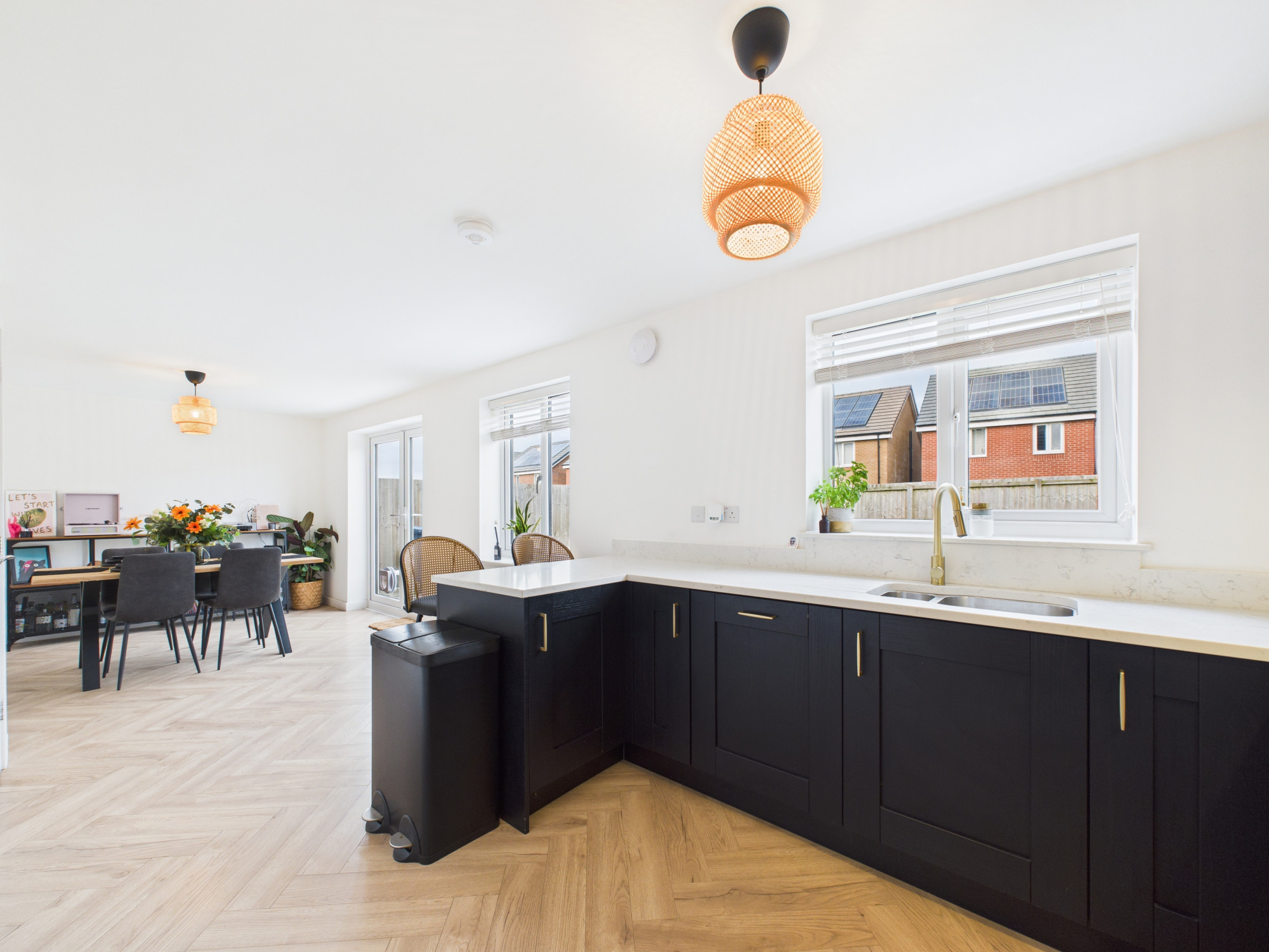 - Impressive open-plan dining kitchen spanning the full width of the property
