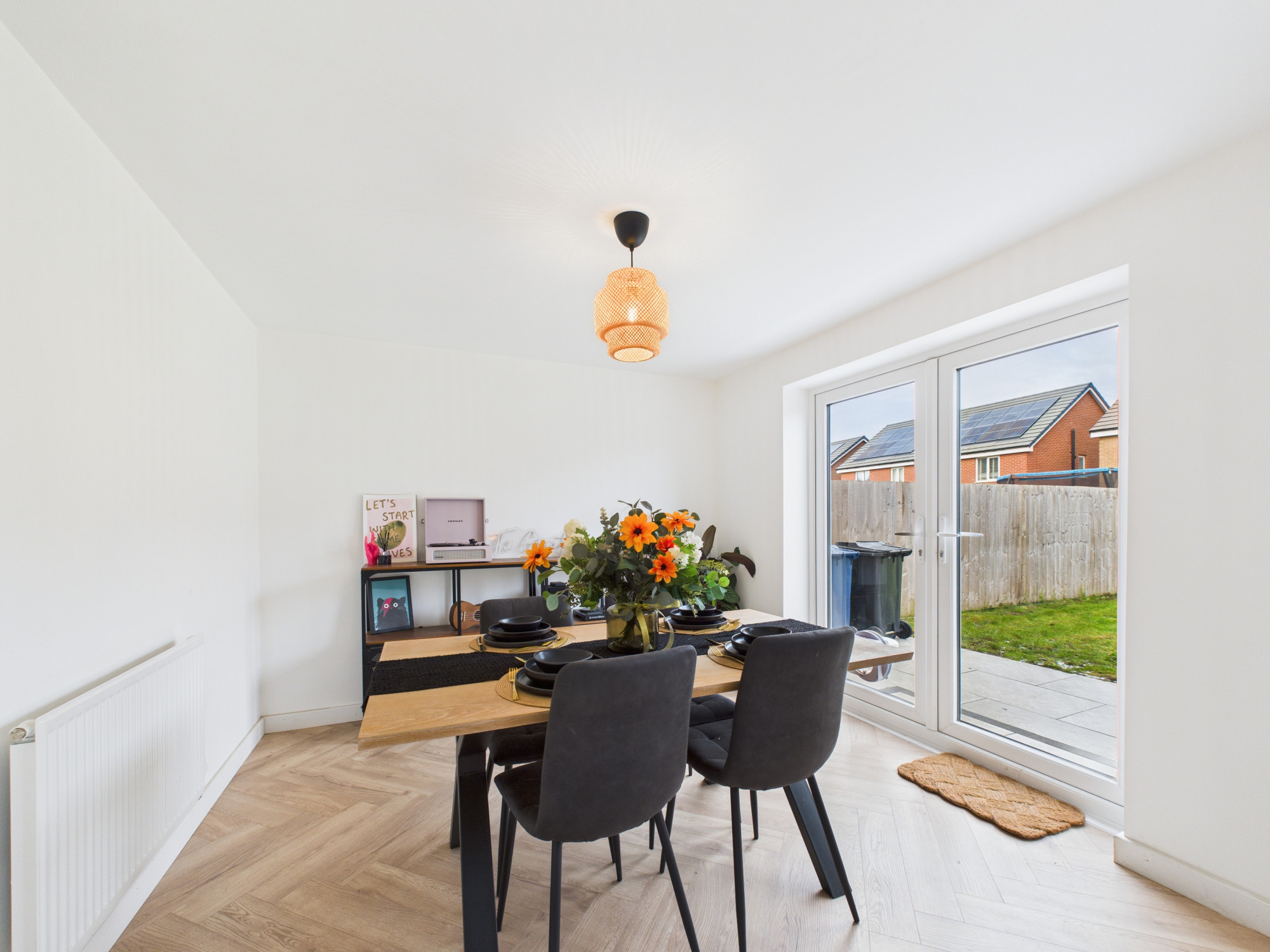 Externally, the home benefits from aΒ double-width driveway,Β detached double garage, and a neatly laid-to-lawn front garden. To the rear, a generousΒ lawnedΒ garden is complemented by anΒ extended patio, ideal for outdoor dining and entertaining.