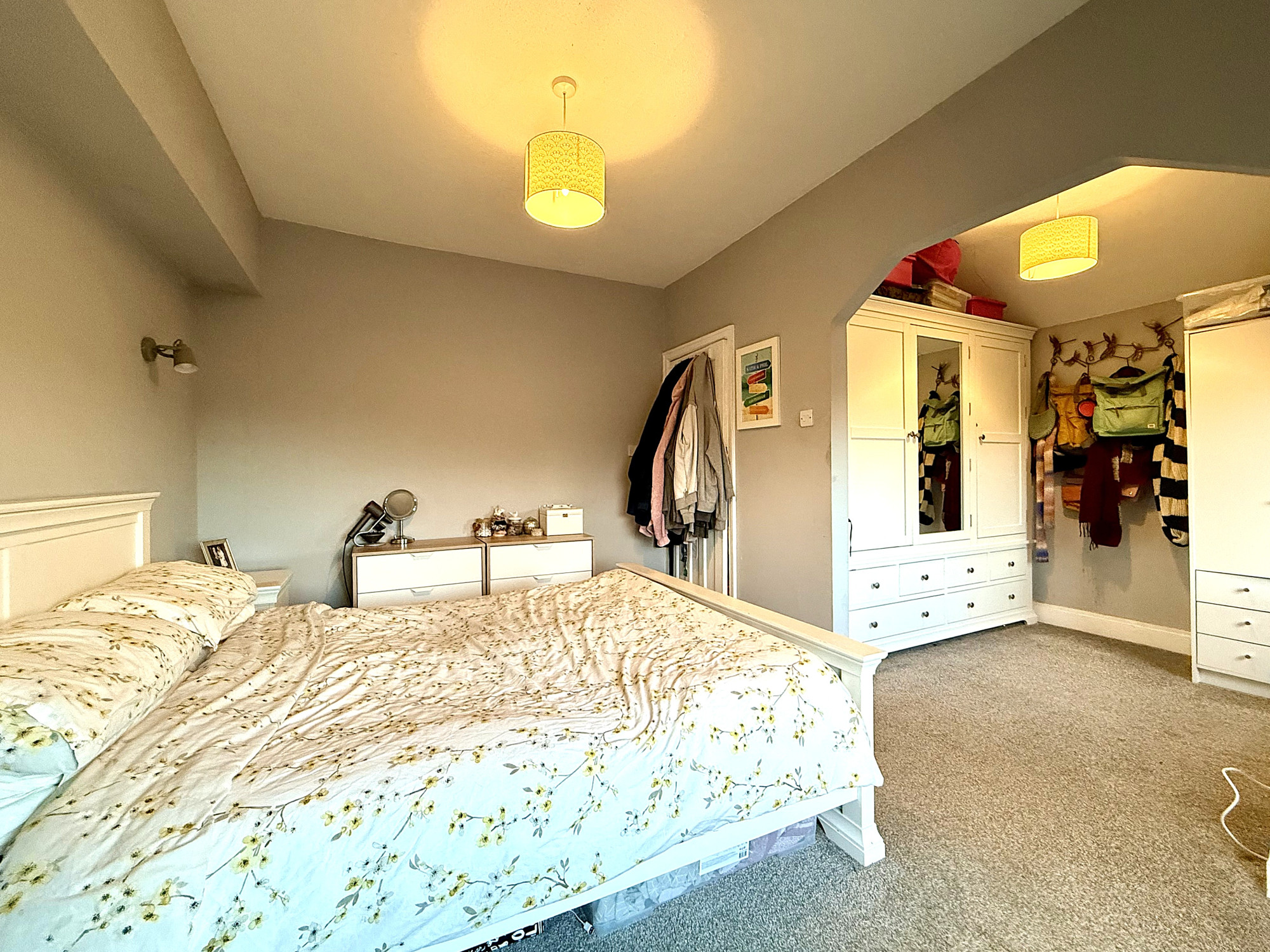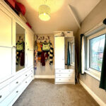 Set on the first floor, this well-arranged home offers generous proportions and contemporary finishes. A central landing provides access to all rooms. The master bedroom is king-size with a bay window to the front and an open-plan dressing room, creating a luxurious, personalised retreat. Bedroom two is double-sized with rear views, while bedroom three also doubles as a comfortable double with a front-facing window. Bedroom four is a large single with rear views, ideal as a childβs room or home office. The family bathroom features a modern fitted suite with a bath, WC, and a hand wash basin with storage beneath, plus a heated towel rail, black fixtures, and contemporary tiling. A separate shower room offers a modern, double walk-in shower with a glass screen, WC, a hand wash basin with chrome fixtures, a heated towel rail, and contemporary tiling.