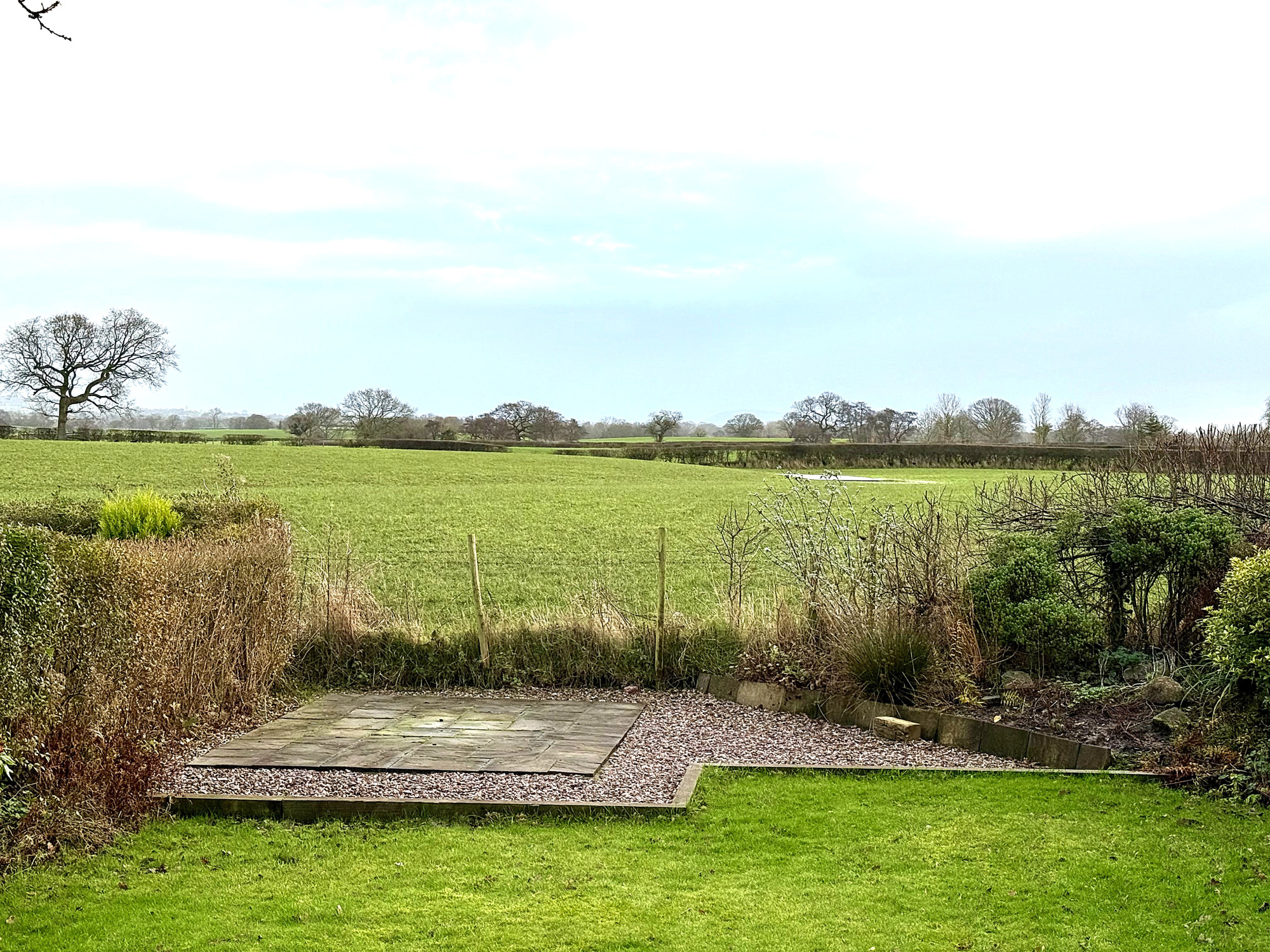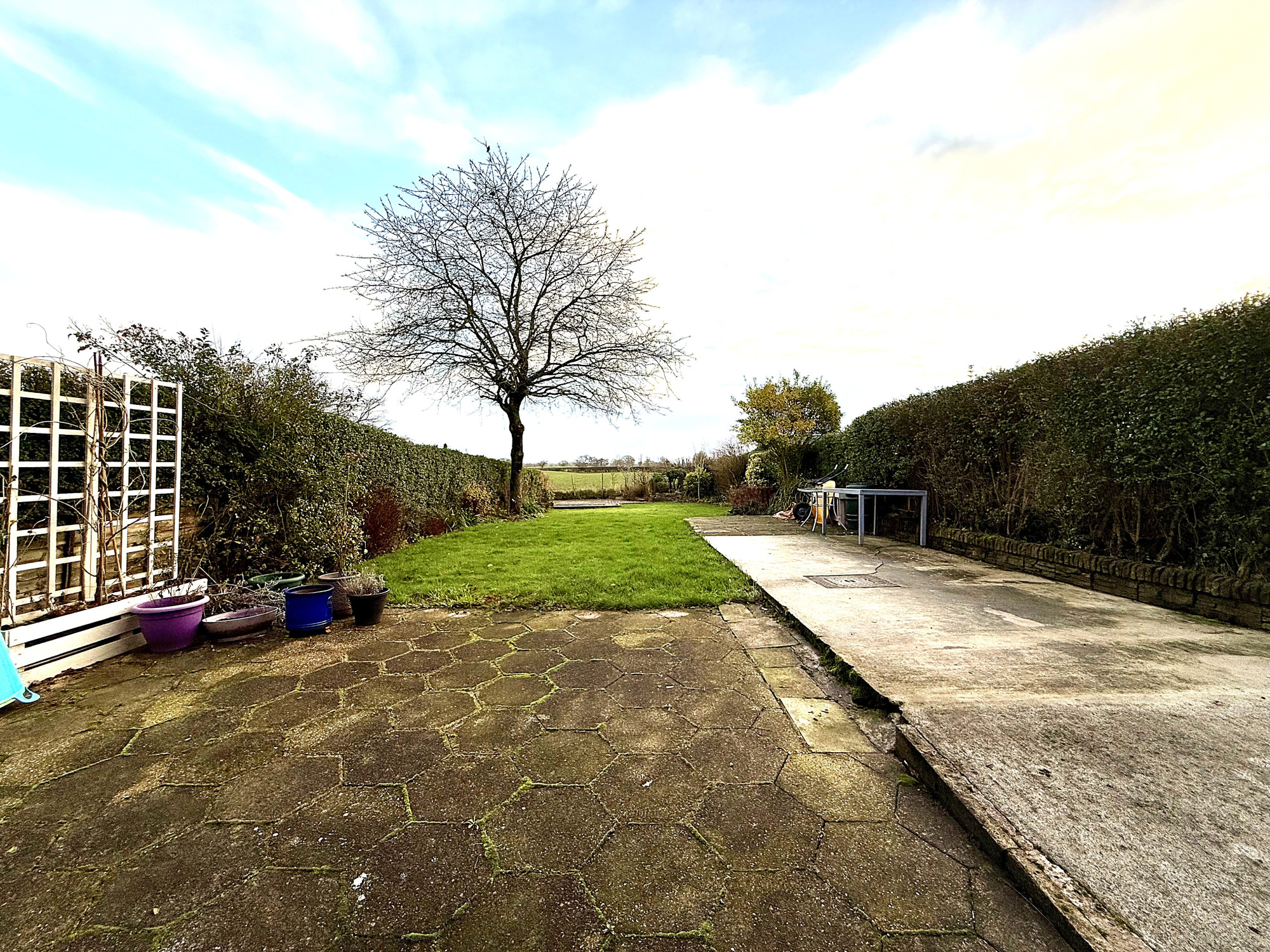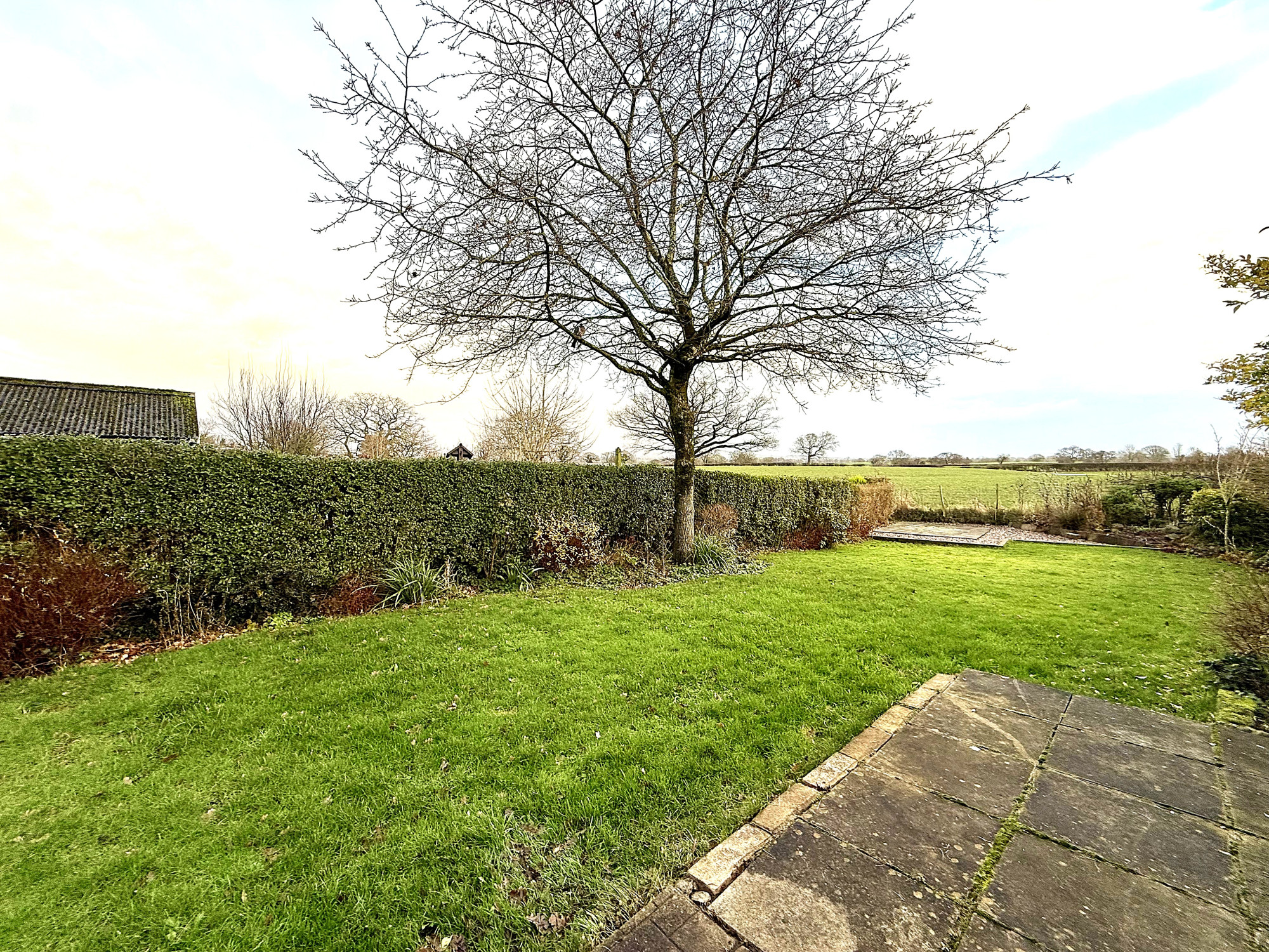 Externally, this property sits behind established privacy hedges on both sides, creating a secluded feel from the street. A block-paved driveway to the front provides off-road parking for three cars and leads to a garage with convenient access. The frontage is framed by mature plantings,trees and shrubs, that enhance curb appeal and offer year-round screening, with a generous lawn complementing the overall outlook. To the rear, a large patio area offers ample space for outdoor entertaining, with a hard standing area ready for a future outbuilding or shed. The side boundaries continue to benefit from privacy hedges, and at the very rear there is a dedicated patio/viewing area that overlooks stunning, unspoilt views.