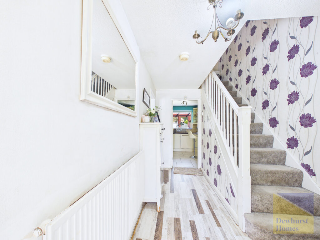 To the first floor, the property offers three well-proportioned bedrooms, each providing comfortable accommodation. The principal bedroom benefits from a modern ensuite, while the remaining bedrooms are served by a stylish family bathroom. A useful storage cupboard is located on the landing, and a loft space provides additional storage solutions.
