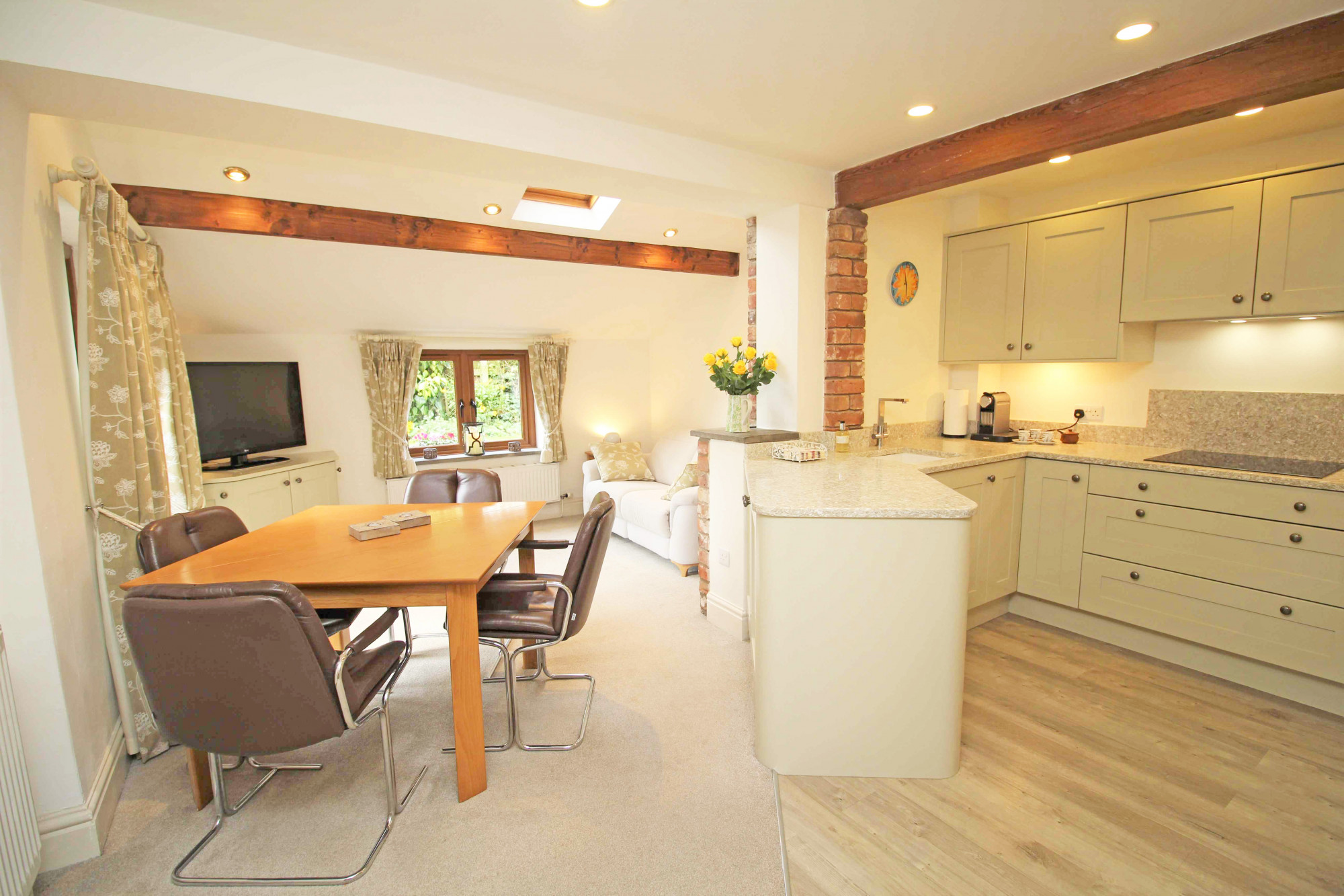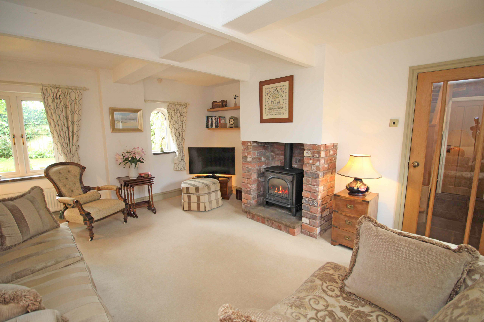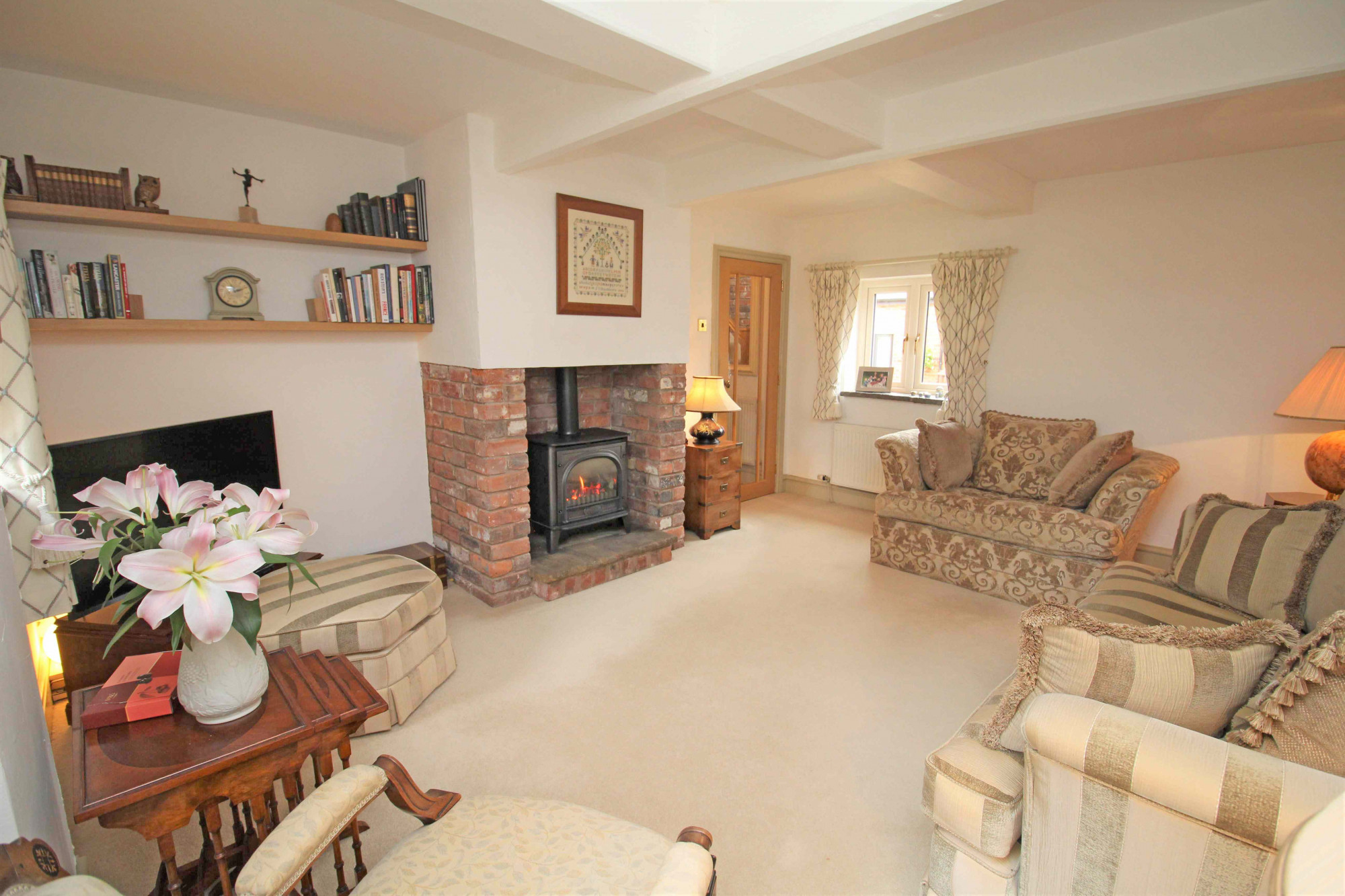 Upon entering the property, you are greeted with a generous sized hall having stone floor, exposed stone wall with Doors leading to the living accommodation, access to the integral garage and Oak staircase leading up to the first floor.Β The lounge is situated to the left and enjoys dual aspect, whilst a beautiful cast iron coal effect fire creates the perfect focal point to the room. To the rear is the spacious and well fitted 'Carl Josef' breakfast kitchen, featuring stylish shaker style units with integral appliances providing a seamless finish. Thanks to its size, there is ample space for a dining table and lounge are offering that all important versatility and flexibility for use, the choice is yours! From the kitchen are French doors leading to the stunning walled garden. To the first floor you will find three bedrooms and the shower room, which is fitted with a three-piece suite, complemented perfectly with attractive natural stone coloured tiling. The main bedroom has been cleverly converted to take full advantage of the stunning views over open countryside, also coming complete with fitted furniture and its own Ambiance Baine en-suite. Beautifully presented throughout, this home enjoys the perfect blend of space and light, every box ticked!