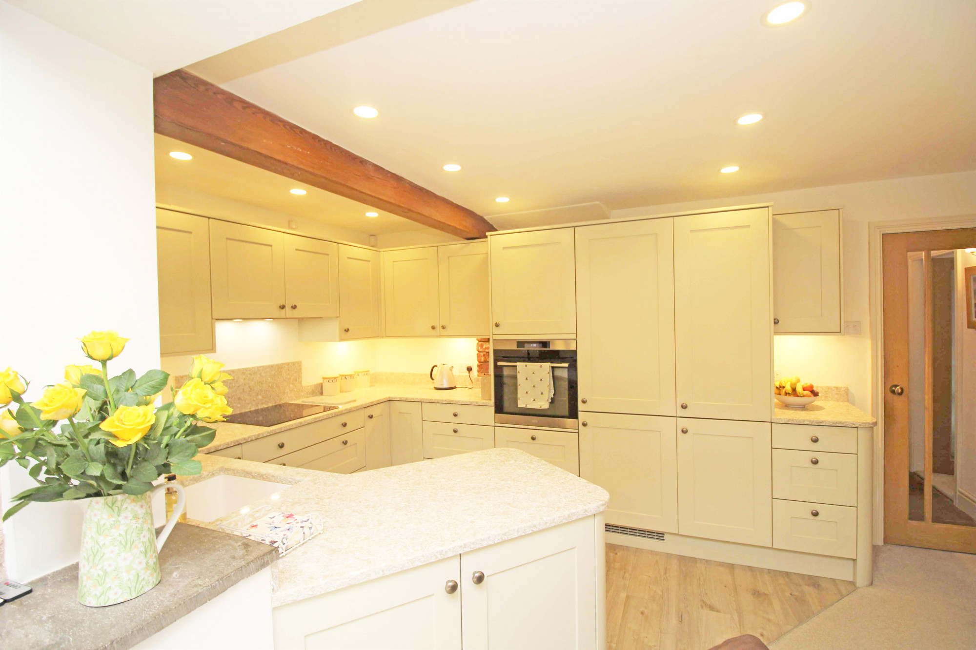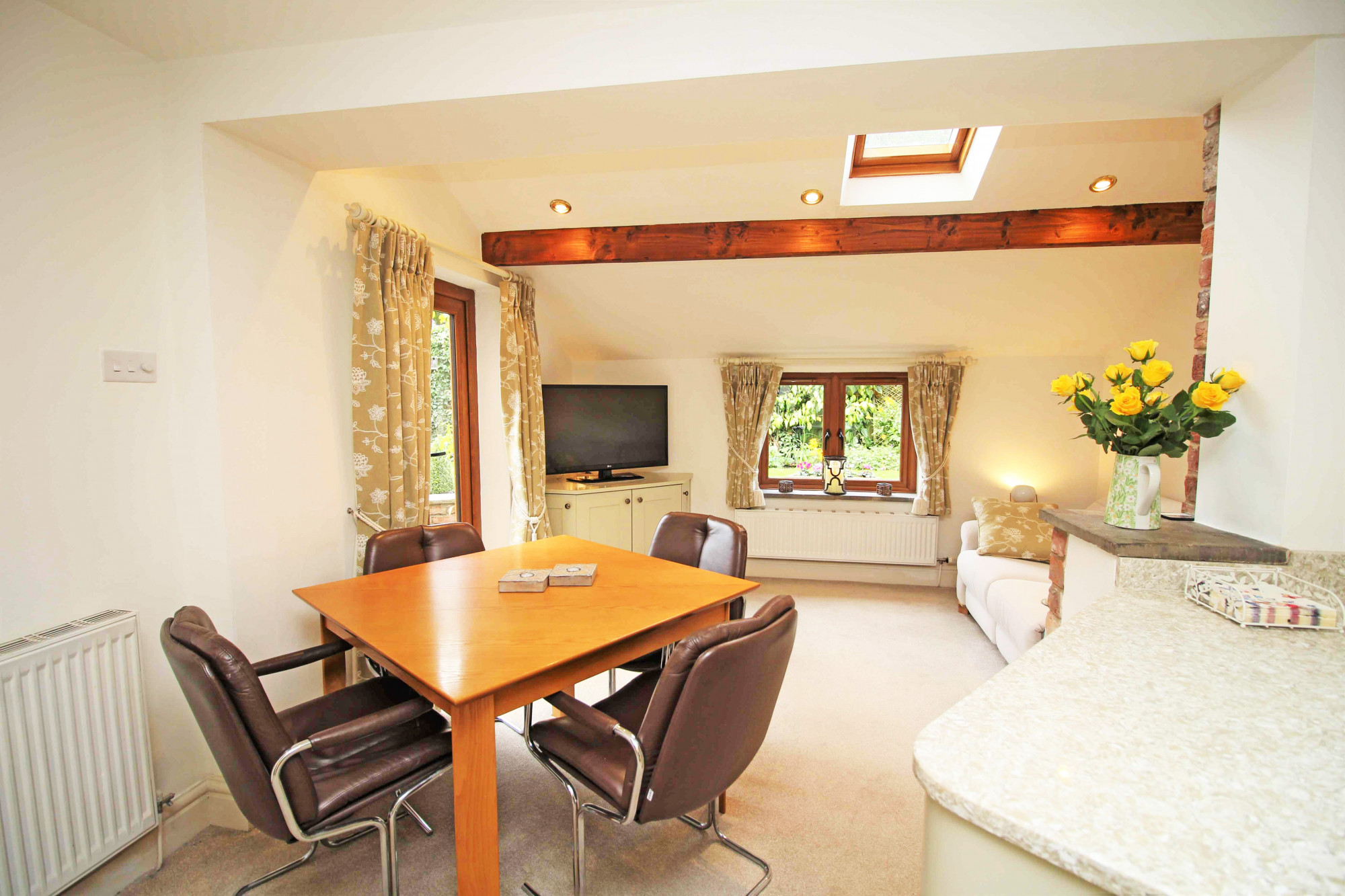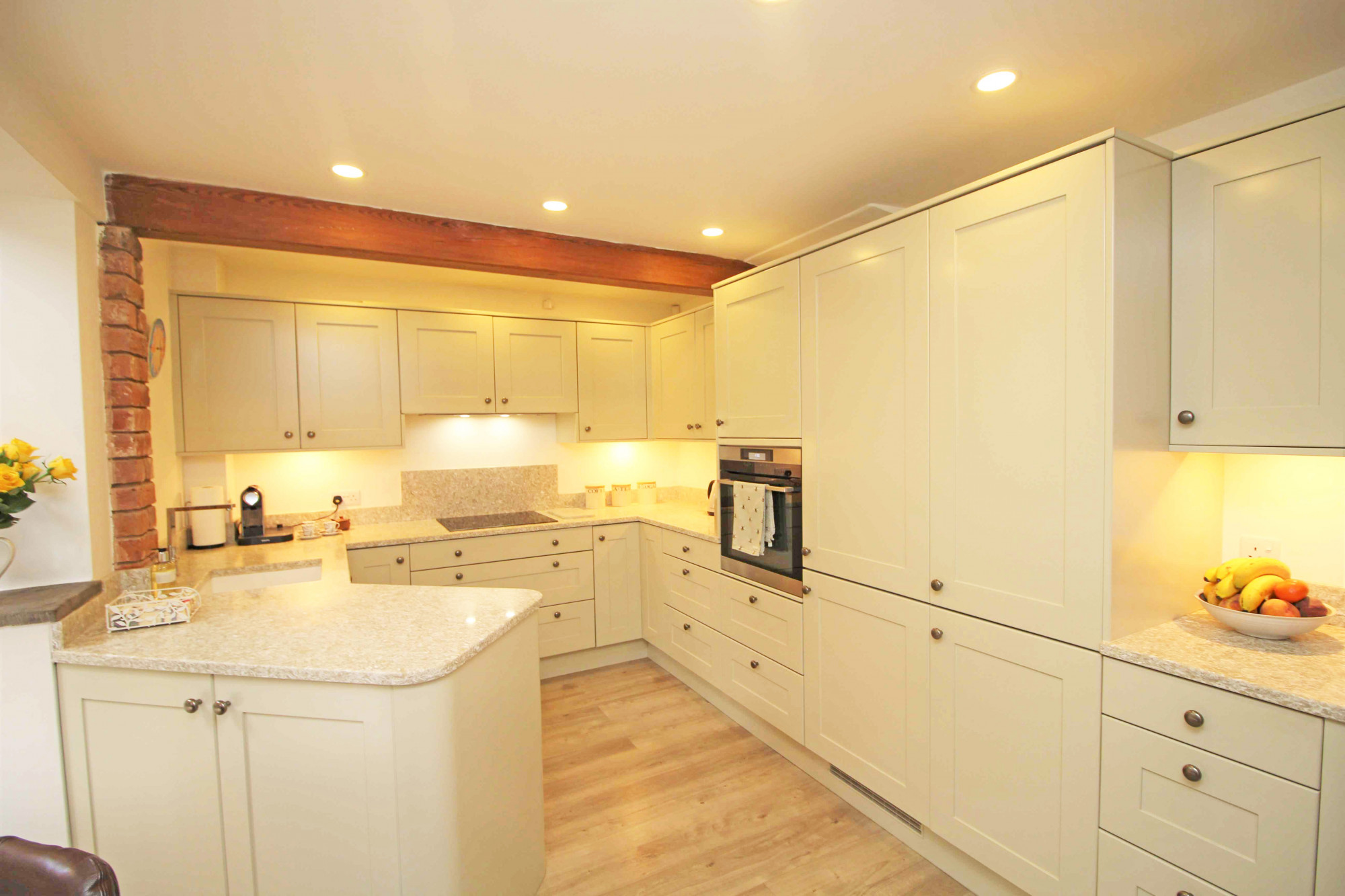 Upon entering the property, you are greeted with a generous sized hall having stone floor, exposed stone wall with Doors leading to the living accommodation, access to the integral garage and Oak staircase leading up to the first floor.Β The lounge is situated to the left and enjoys dual aspect, whilst a beautiful cast iron coal effect fire creates the perfect focal point to the room. To the rear is the spacious and well fitted 'Carl Josef' breakfast kitchen, featuring stylish shaker style units with integral appliances providing a seamless finish. Thanks to its size, there is ample space for a dining table and lounge are offering that all important versatility and flexibility for use, the choice is yours! From the kitchen are French doors leading to the stunning walled garden. To the first floor you will find three bedrooms and the shower room, which is fitted with a three-piece suite, complemented perfectly with attractive natural stone coloured tiling. The main bedroom has been cleverly converted to take full advantage of the stunning views over open countryside, also coming complete with fitted furniture and its own Ambiance Baine en-suite. Beautifully presented throughout, this home enjoys the perfect blend of space and light, every box ticked!