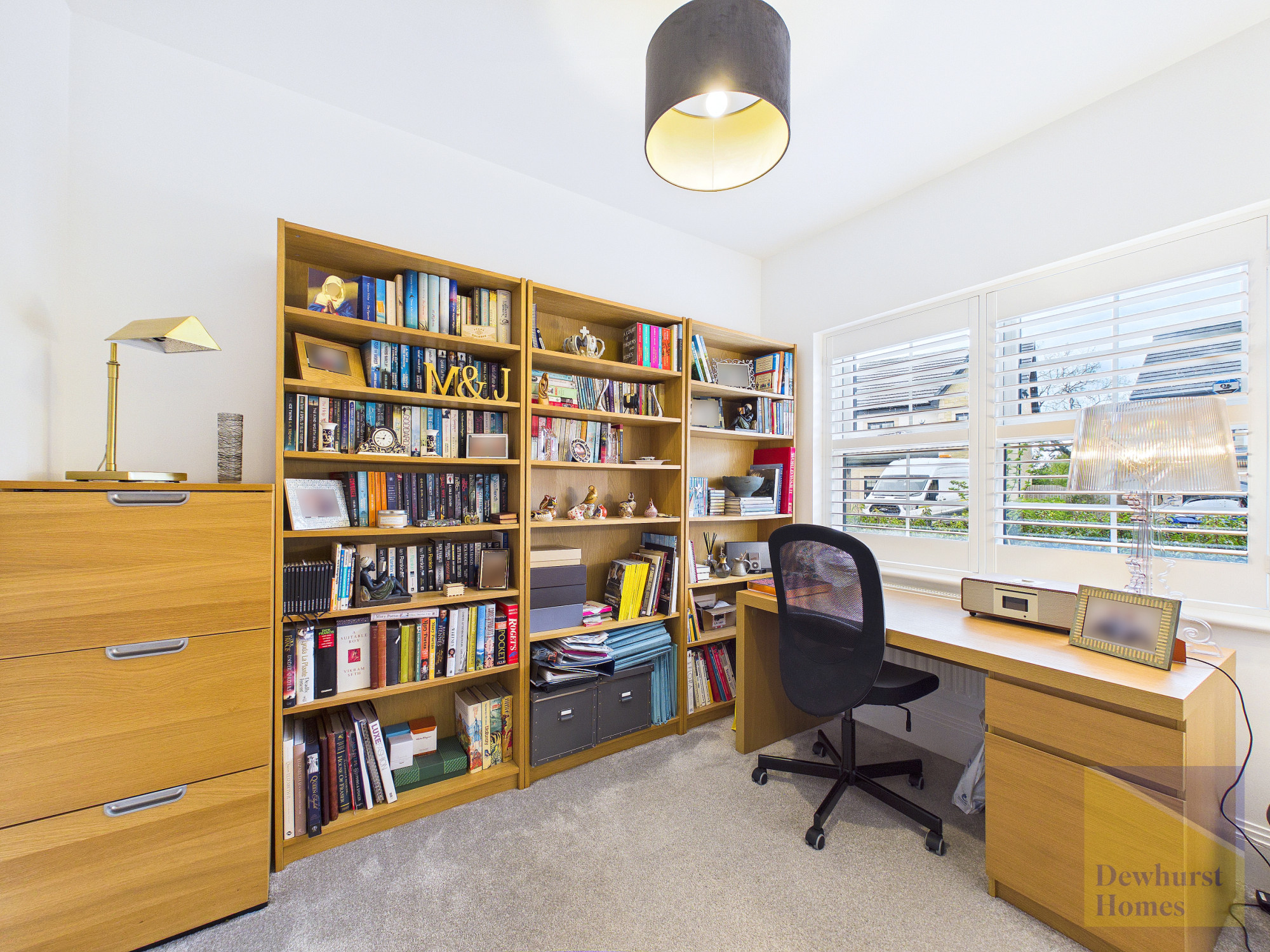 Upon entering, you are welcomed by a generous and inviting hallway finished with high-quality Amtico flooring, setting the tone for the rest of the home. From here, access is provided to a bright and comfortable living room overlooking the front garden, a stylish downstairs WC, useful under-stairs storage, and a well-proportioned home officeβ€”ideal for remote working.