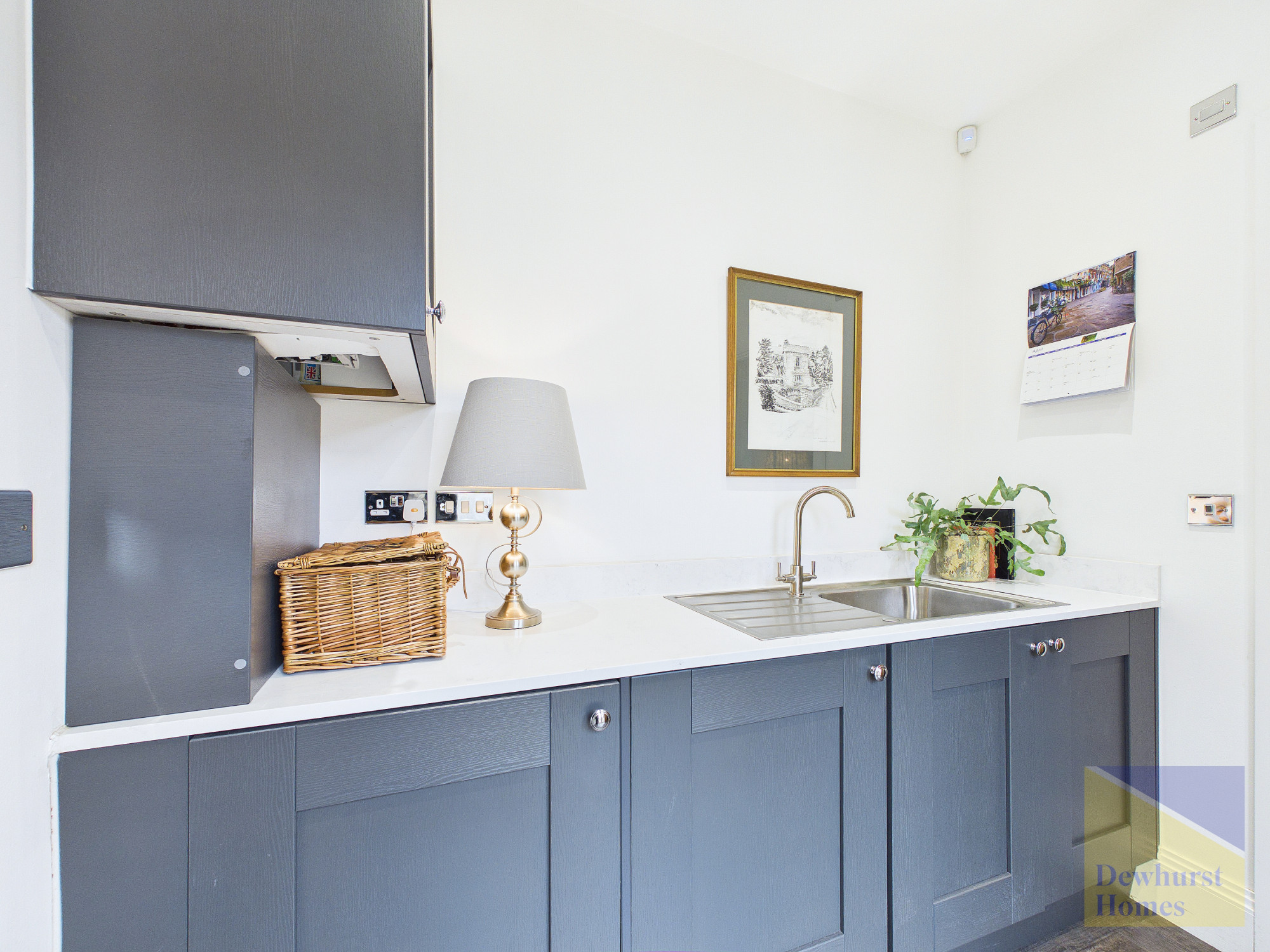 A separate utility room continues the high-quality finish, offering additional storage, further integrated appliances, and access to the rear garden.