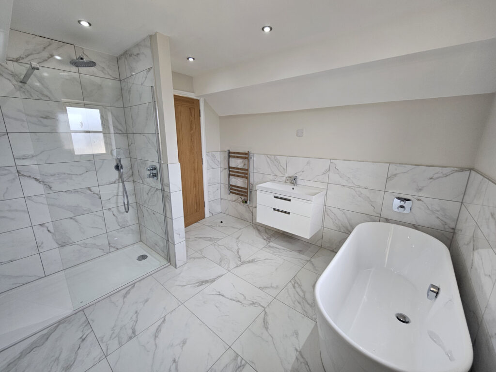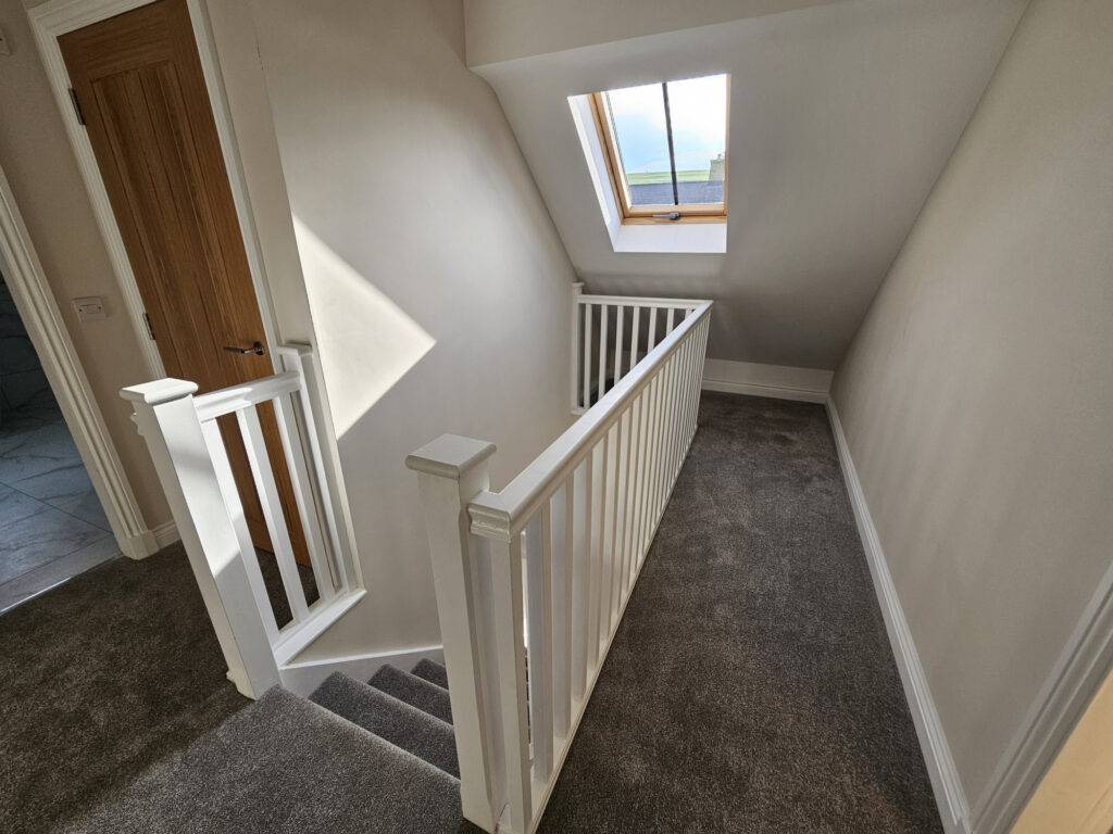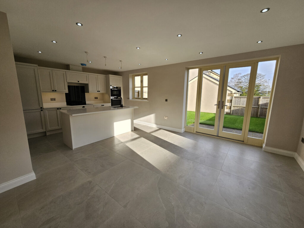 Upstairs offers four generous double bedrooms, one with an en-suite, plus a stylish family bathroom. The top floor is home to a stunning master suite with dressing area and en-suite. Externally, there’s a detached garage and driveway parking.