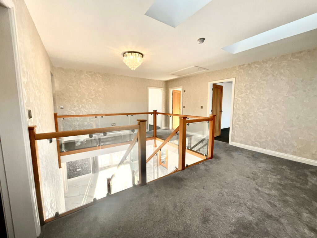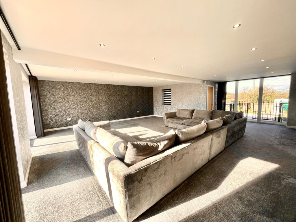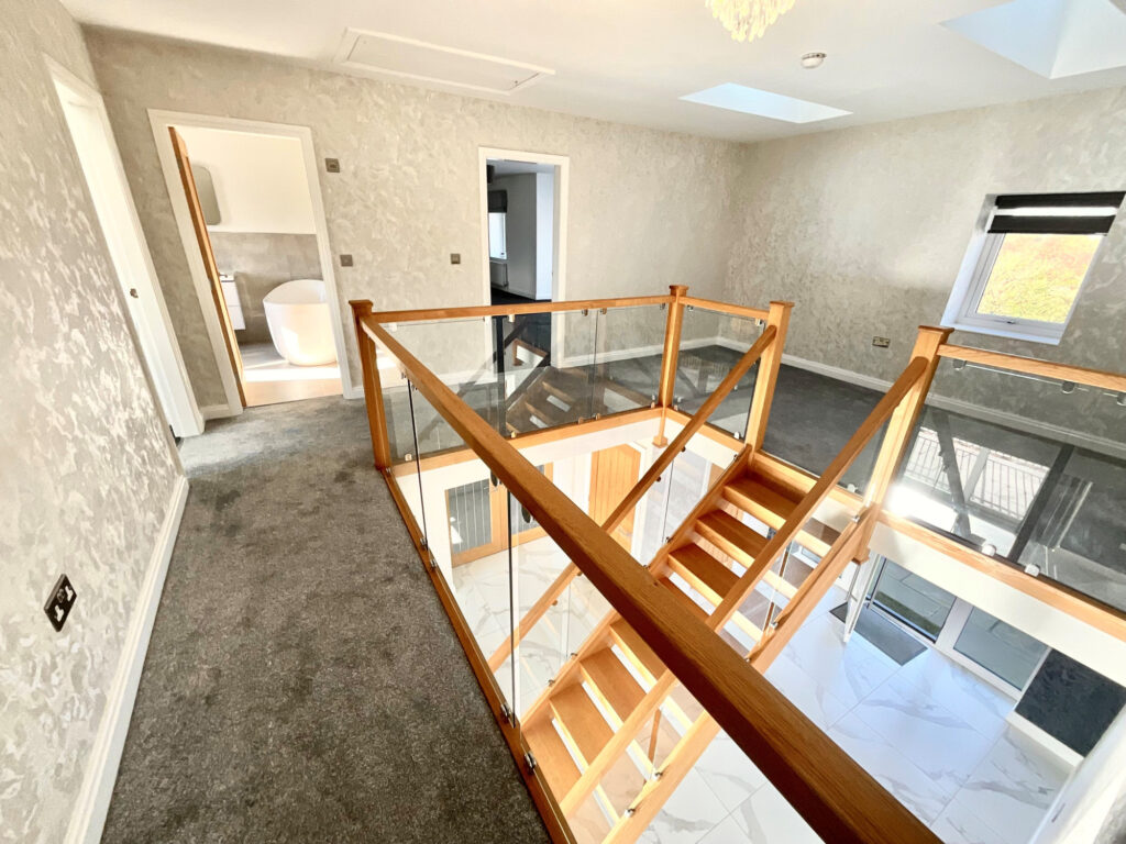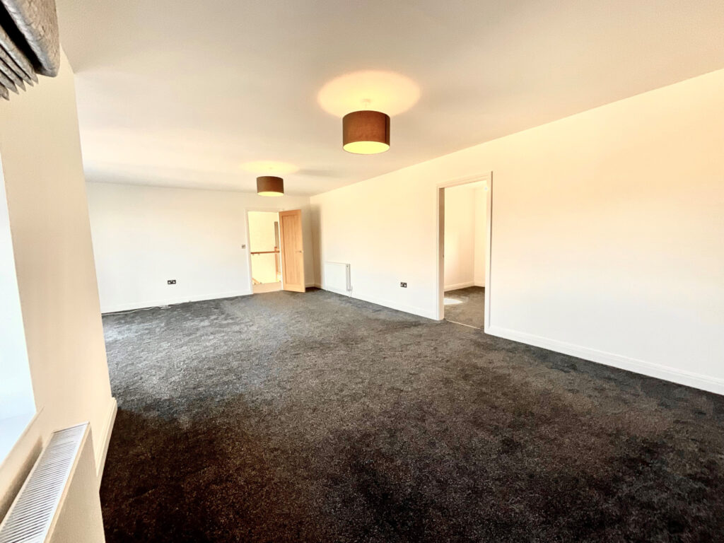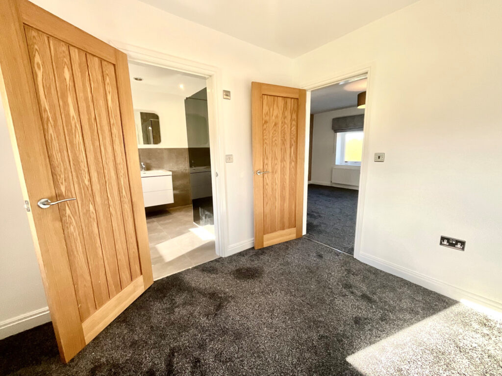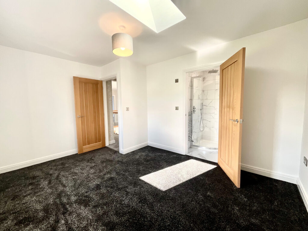Upstairs, the accommodation continues to impress. The principal suite is a true retreat, with generous proportions that allow for a bedroom and private lounge area. It also includes a walk-in dressing room and a luxurious four-piece en-suite featuring a freestanding bath, vanity unit, and walk-in shower with smoked glass screen.