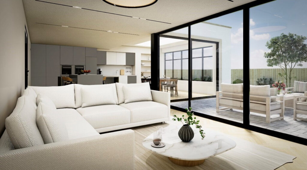 Upon entering, you are greeted by an abundance of natural light, seamlessly flowing through the open-plan layout, complemented by full height glazed sliding doors that lead to the meticulously landscaped gardens. The heart of the home is the bespoke German kitchen complete with Neff appliances, perfect for culinary enthusiasts and hosting gatherings. The master bedroom features an en-suite and dressing room, providing a private retreat.