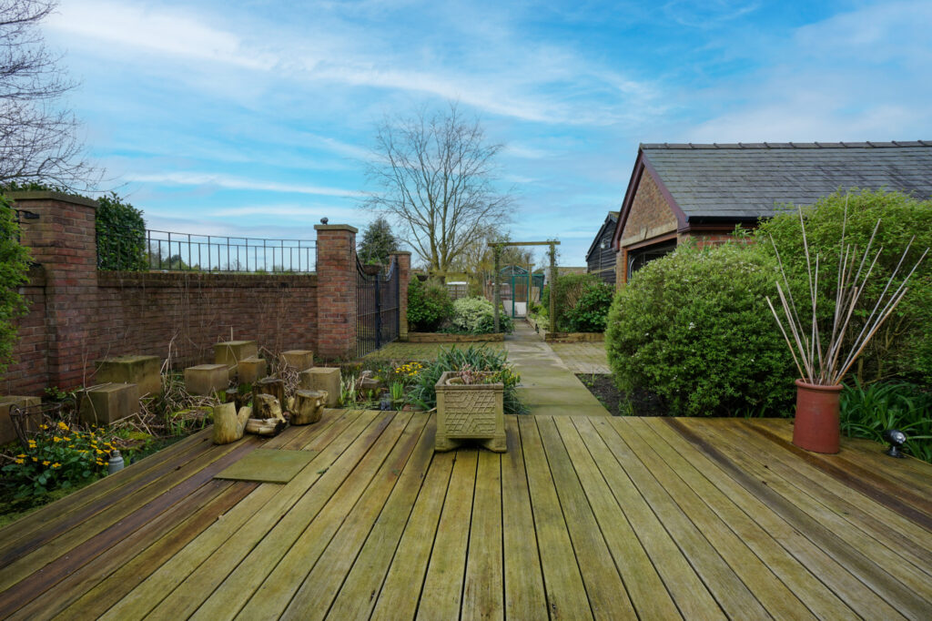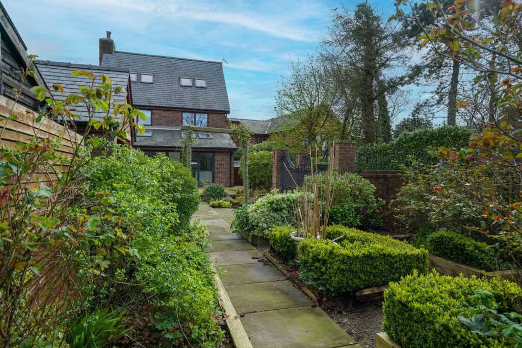 The rear walled garden features a magnificent array of planting with sandstone and block paved pathways, greenhouse and well established borders.