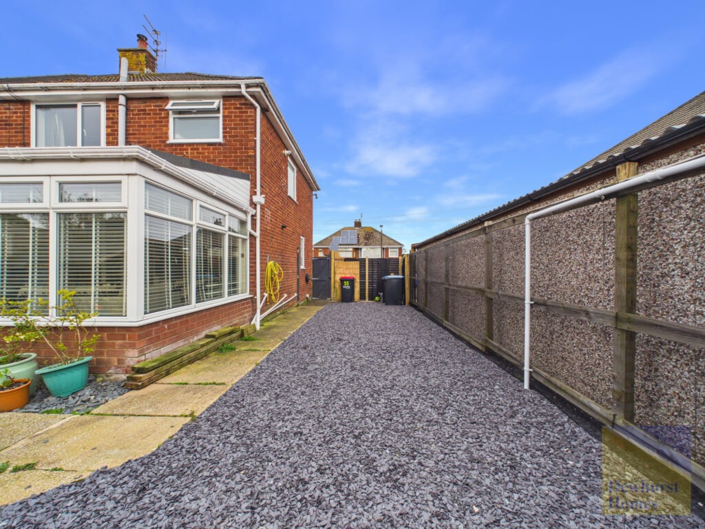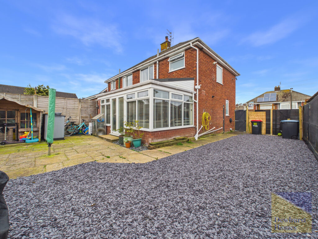 Externally, the property continues to impress with its low-maintenance outdoor spaces. The front garden features a generous driveway providing off-road parking for up to three vehicles, bordered by fencing and mature privacy hedging to create a sense of seclusion. To the rear, the private and secure garden has been designed for ease of upkeep, with a large patio area ideal for outdoor dining and entertaining, alongside decorative stone features that add a stylish finish.