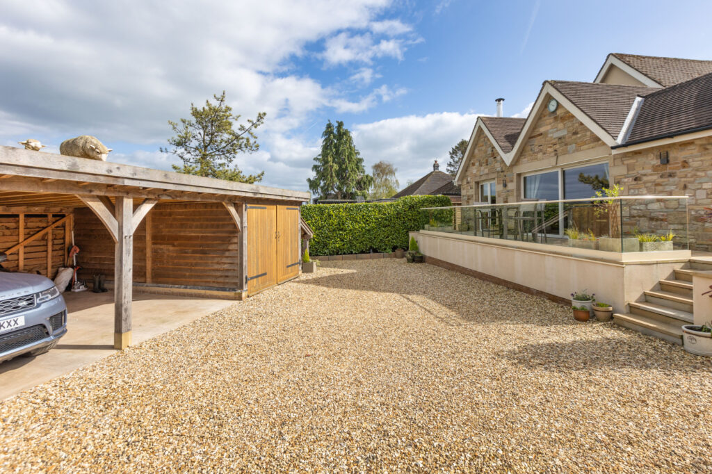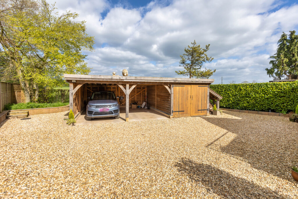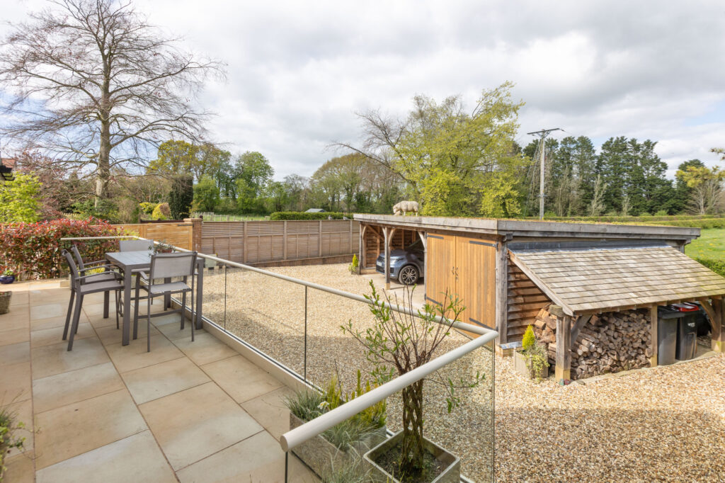 The panorama is framed by the living sedum roof of the bespoke, oak-framed garage with log store and enclosed storage. There is additional parking on the gravel driveway, plus a dedicated space at the front of the property. Electric gates offer security and privacy, and there is CCTV, security alarm and security lighting. Other features of the outside space include landscape lighting, a 7 kw car charger and a 16 amp motor home charger.
