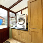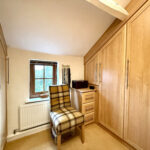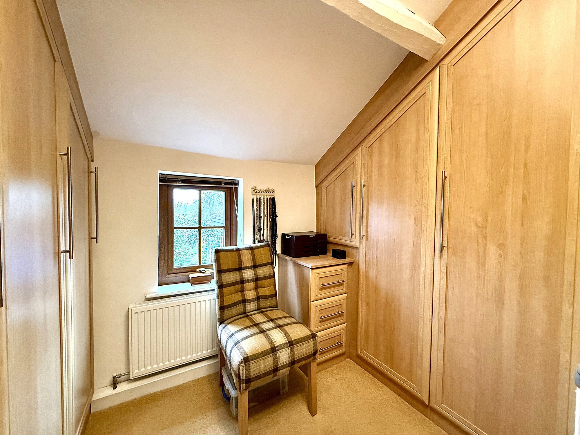 The master bedroom is a serene retreat, featuring a spacious double layout and a charming window overlooking the front, inviting natural light and creating an airy atmosphere. Bedroom two offers another generous double space, complete with elegant fitted wardrobes that maximize storage and maintain a clean, uncluttered aesthetic. A delightful third bedroom, currently transformed into a chic dressing room, boasts fitted wardrobes on both sides, a perfect space for fashion enthusiasts or those seeking a versatile additional room. The shower room is a true highlight, featuring a luxurious double walk-in shower with sophisticated glass screening. Complemented by double hand wash basins with convenient under-storage, chrome fixtures, and harmonious wall and floor coverings, this space epitomizes modern bathroom design. A large storage cupboard adds practical convenience, ensuring every inch of the property is thoughtfully designed.