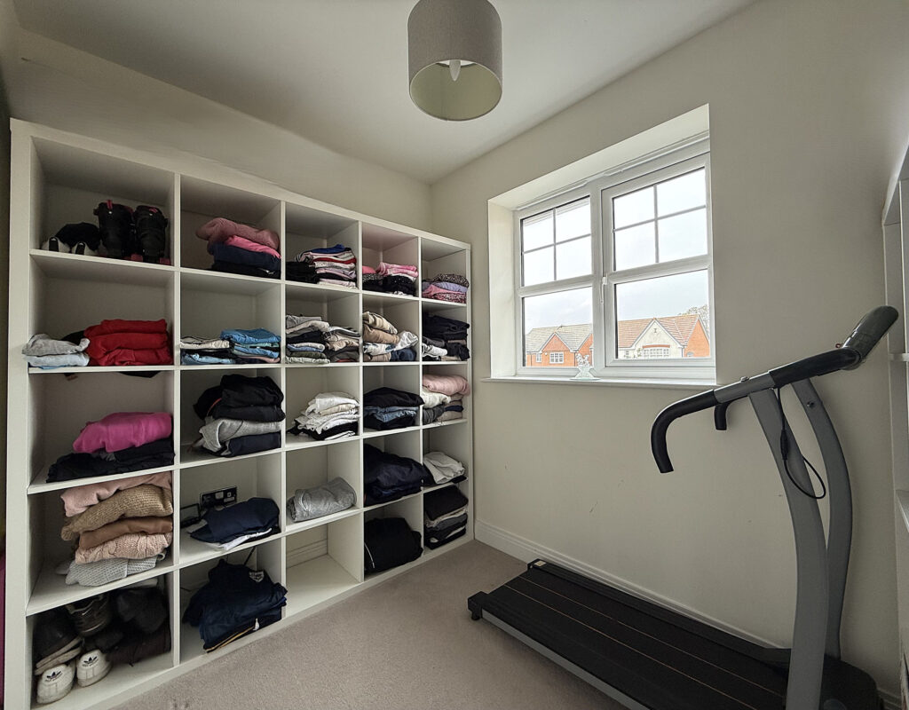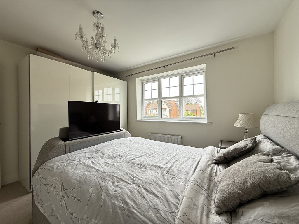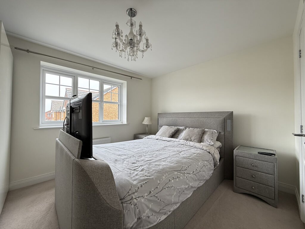 Ascend the stairs to the first floor of this beautifully designed home, where light and airiness greet you at every turn. Enjoy seamless access to all rooms, perfectly designed for both comfort and convenience. The loft access provides additional storage options to keep your living space organized. As you explore, you'll find the first bedroom, a master-sized sanctuary featuring a free standing wardrobe and exclusive access to an en-suite shower room, ideal for those peaceful moments of self-care. The second and third bedrooms are generously sized doubles, perfect for family members, guests, or even a home office setup. Each space is thoughtfully designed to accommodate various needs. Additionally, the fourth room offers a versatile multi-purpose area, ready to adapt to your lifestyle, be it a playroom, workout space, or cozy reading nook. Completing this floor is the family bathroom, boasting a sleek look that caters to everyone's needs, ensuring functionality without sacrificing style.