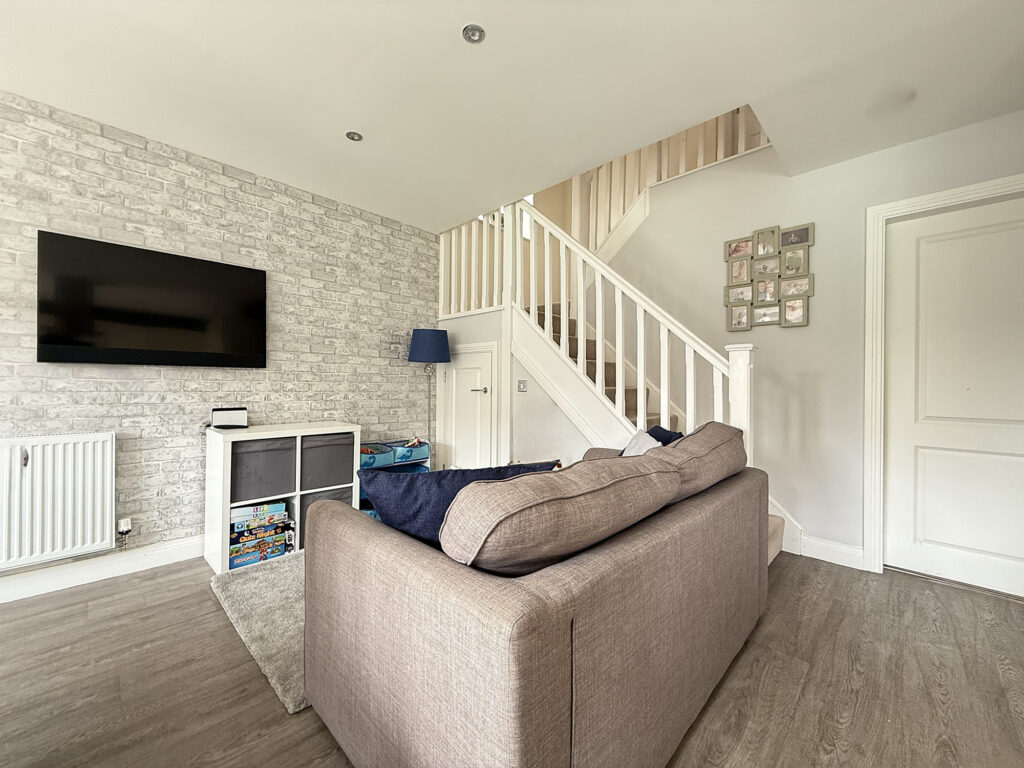Convenience meets style from the moment you step onto the inviting porch. As you enter, you are greeted by a tastefully decorated lounge, bathed in natural light from a lovely bay window, creating a warm and welcoming atmosphere. The heart of this home is the open-plan kitchen, dining, and family room, designed for both functionality and comfort. The modern, sleek wall and base units provide ample storage and a contemporary aesthetic, complemented by integrated appliances that make cooking a delight. The spacious kitchen island serves as a perfect gathering spot, whether for casual breakfasts or entertaining friends. Double patio doors seamlessly connect the indoor space to the rear garden, inviting you to enjoy outdoor living. The dining and family area offers a versatile space, ideal for family meals or relaxing evenings. An open spindle staircase leads you to the first floor, enhancing the home’s airy feel, while convenient understairs storage caters to your organizational needs. Completing the ground floor is a well-placed W/C, adding to the home's practicality.