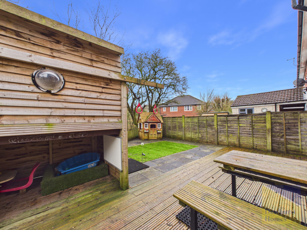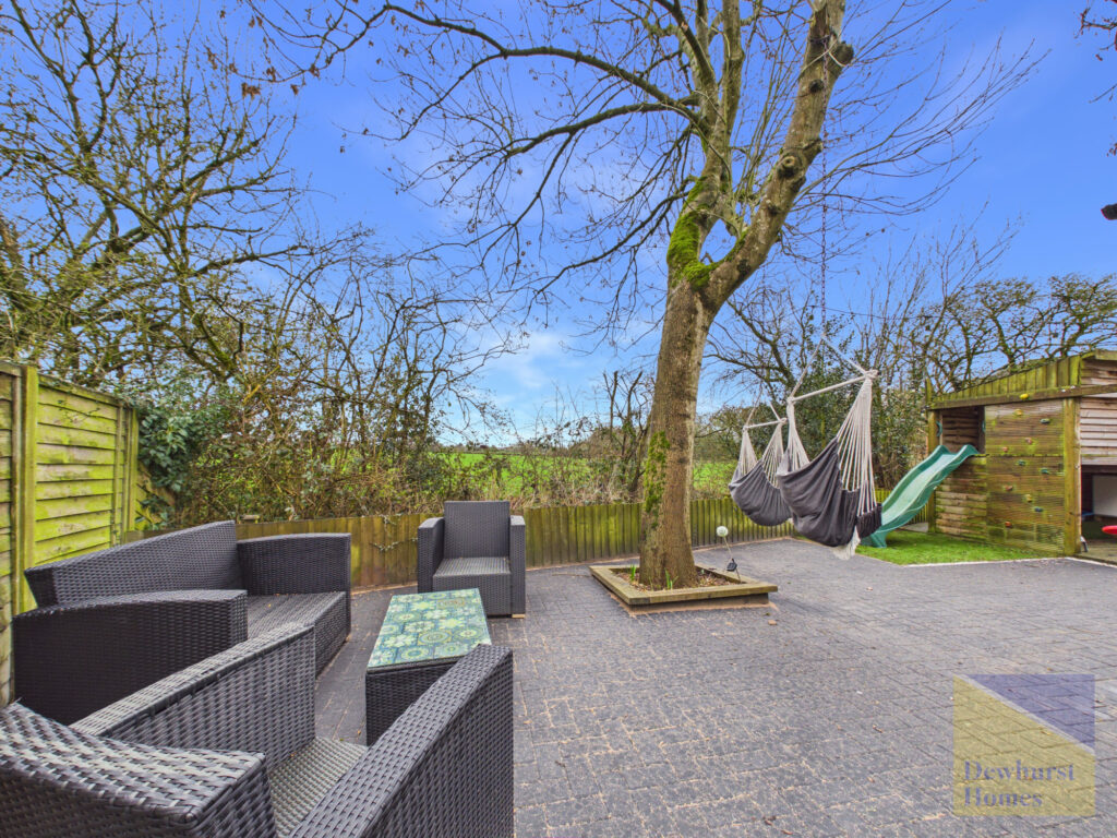 Externally, the property boasts a double driveway to the front, The side and rear garden wraps around the side of the house and offers a generous lawn and paved patio seating area, perfectly positioned to enjoy the stunning countryside views. The garden also benefits from a useful brick outhouse, along with a discreet area for bin storage.