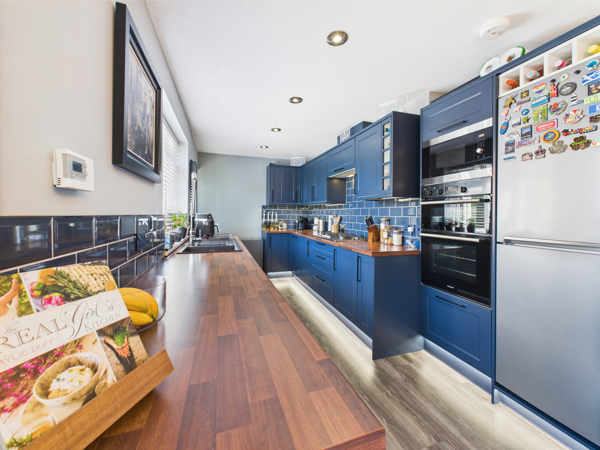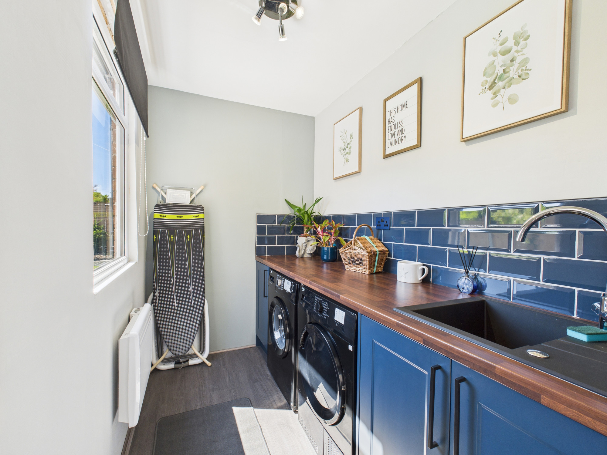 Step through the front door into a welcoming and stylish entrance hallway that sets the tone for the rest of the home. To the front, the living room is a cosy yet spacious retreat, with a beautiful feature log burner creating the perfect focal point for relaxing evenings with family or friends. The rear of the home opens up into an impressive and sociable open plan dining kitchenβa real showstopper space. Designed with both practicality and style in mind, the kitchen features an extensive range of modern units, complementary worktops, and a full suite of high-end integrated appliances, ideal for cooking and entertaining alike. The dining area offers ample space for a large table and benefits from French doors that lead straight out into the garden, allowing the indoors and outdoors to connect effortlesslyβespecially during those sunny summer months. A cleverly designed utility room sits just off the kitchen, fitted with additional storage units, a sink, and plumbing for laundry appliancesβkeeping the main living areas clutter-free and functional.