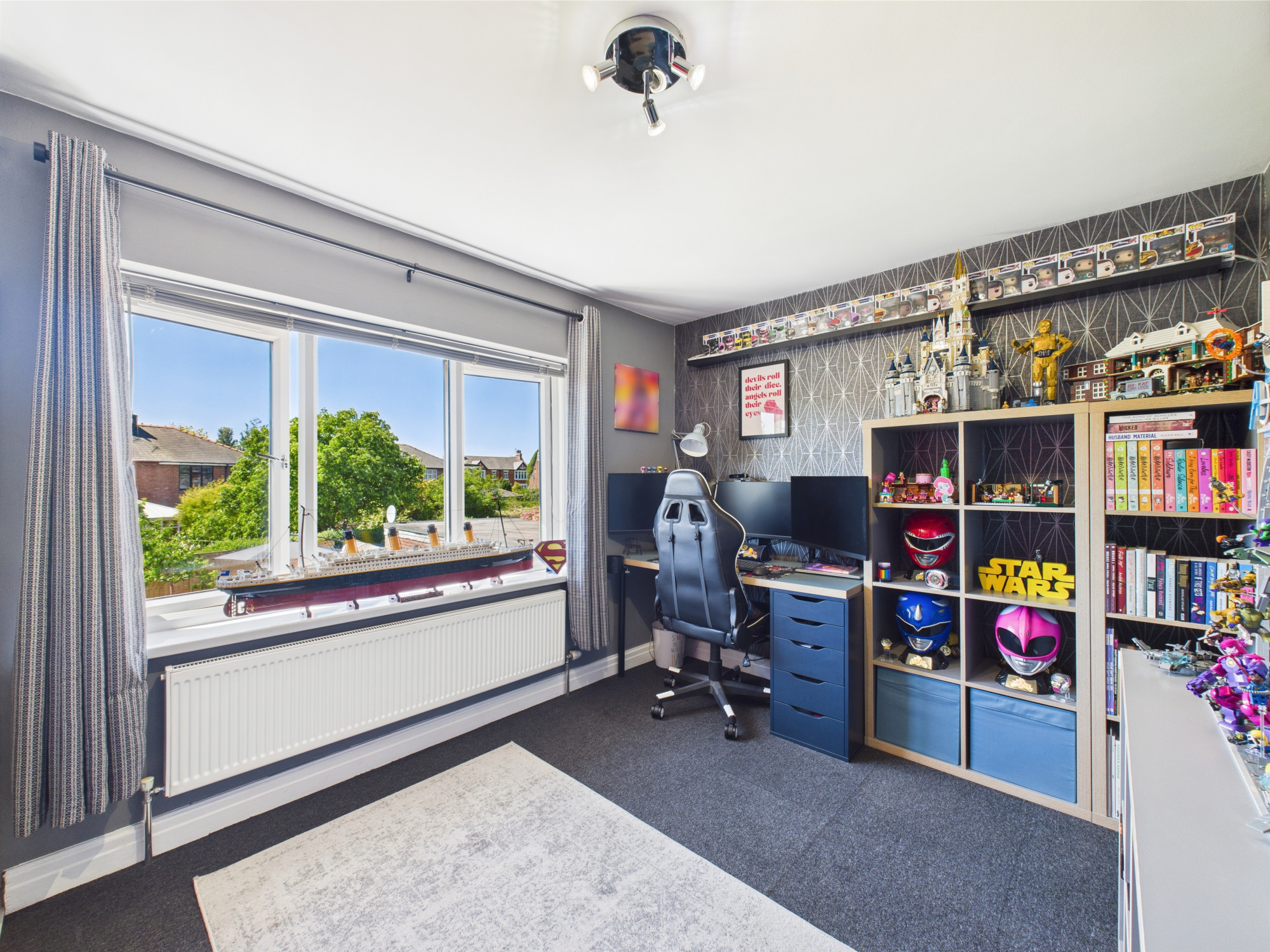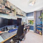Upstairs, the property continues to impress with three well-proportioned bedrooms. The master bedroom is a spacious double with built-in wardrobes, offering a stylish and tranquil retreat at the end of the day. A second double bedroom provides more flexibilityβideal for guests or family membersβwhile the third single bedroom works well as a childβs room, nursery, or a bright and peaceful home office. The contemporary family bathroom is another highlight. Finished to a high standard, it features a four-piece suite, including a separate shower and bath, sleek fittings, and tasteful part-tiled walls for a clean, modern look.