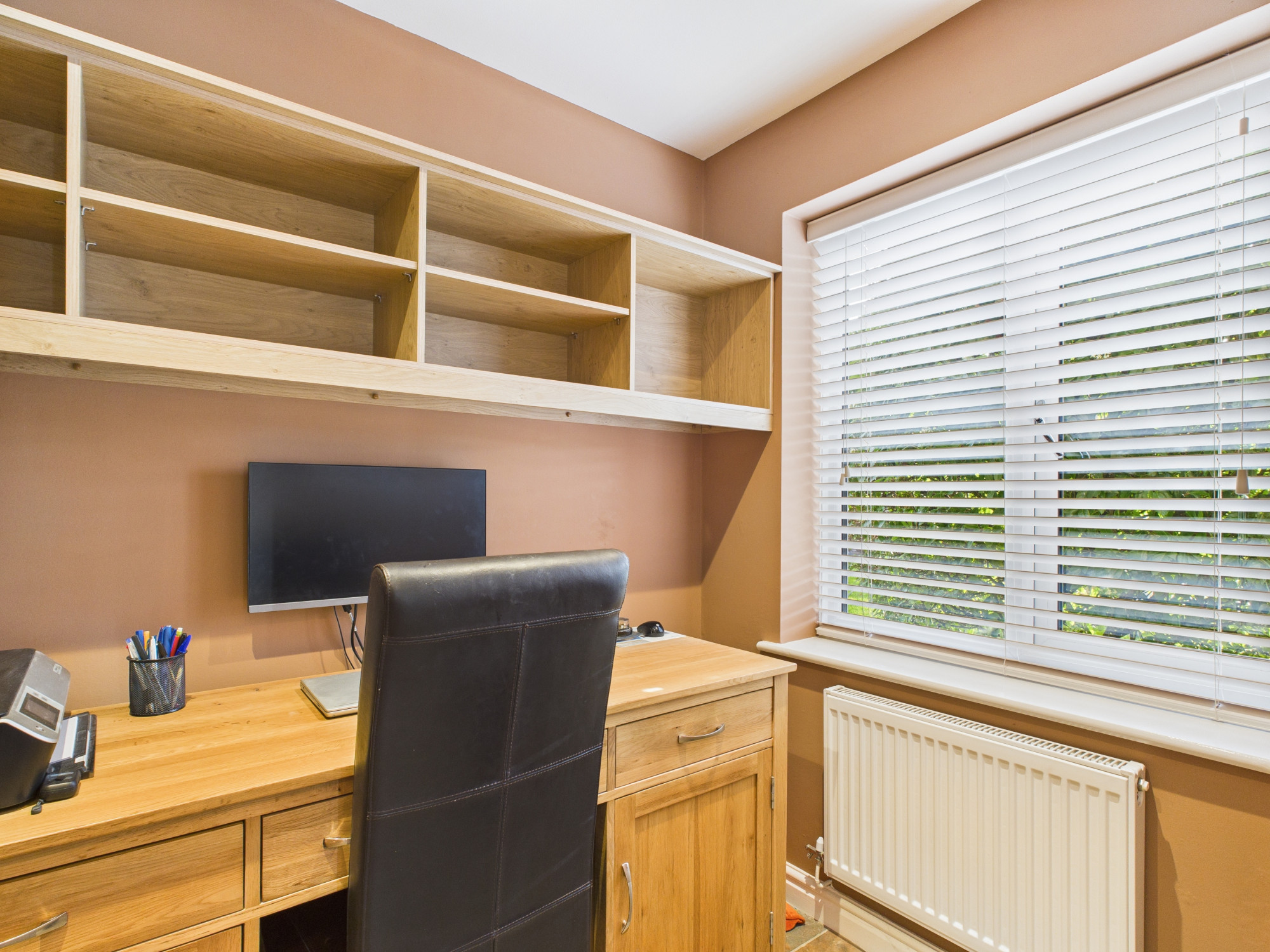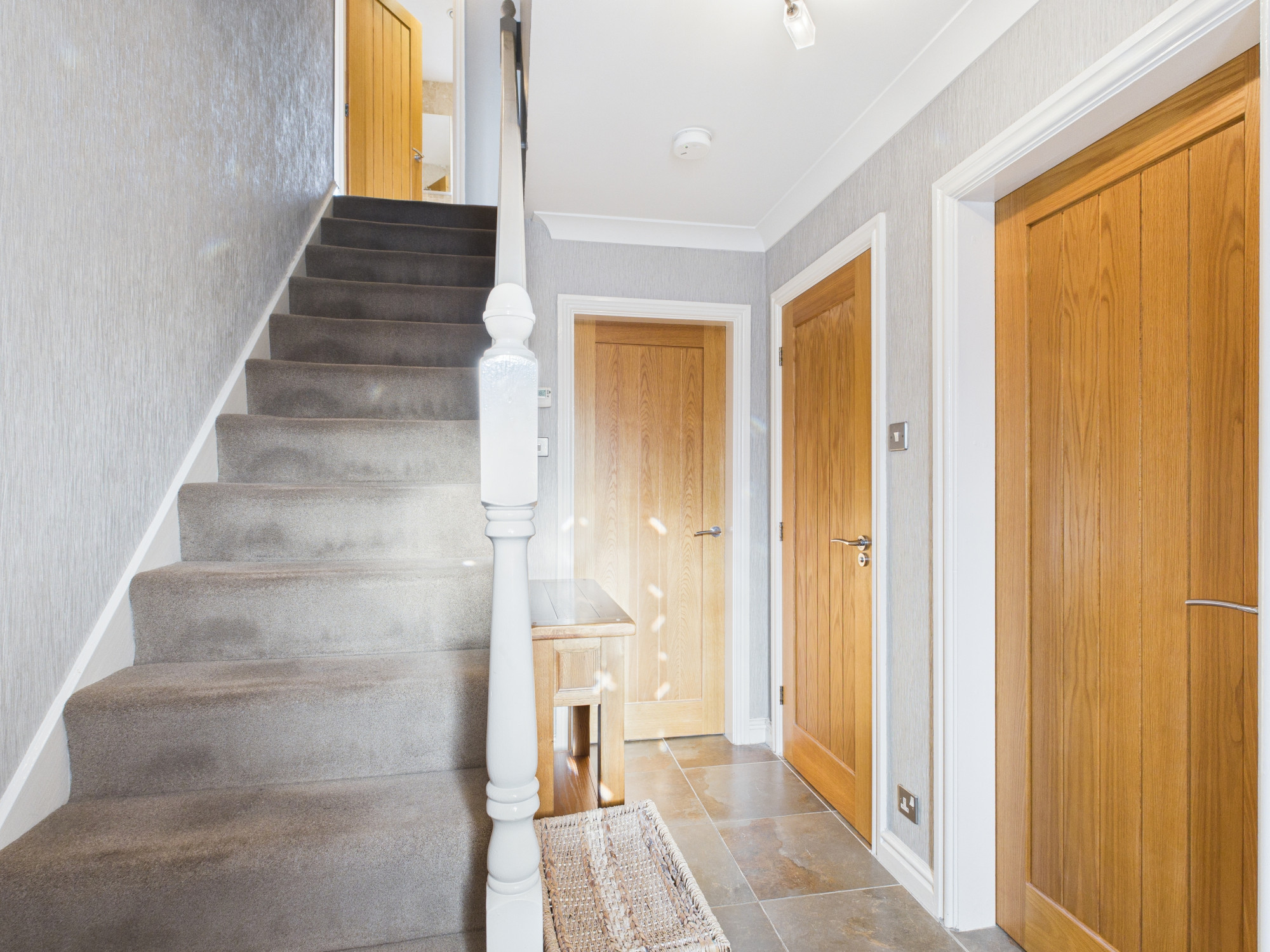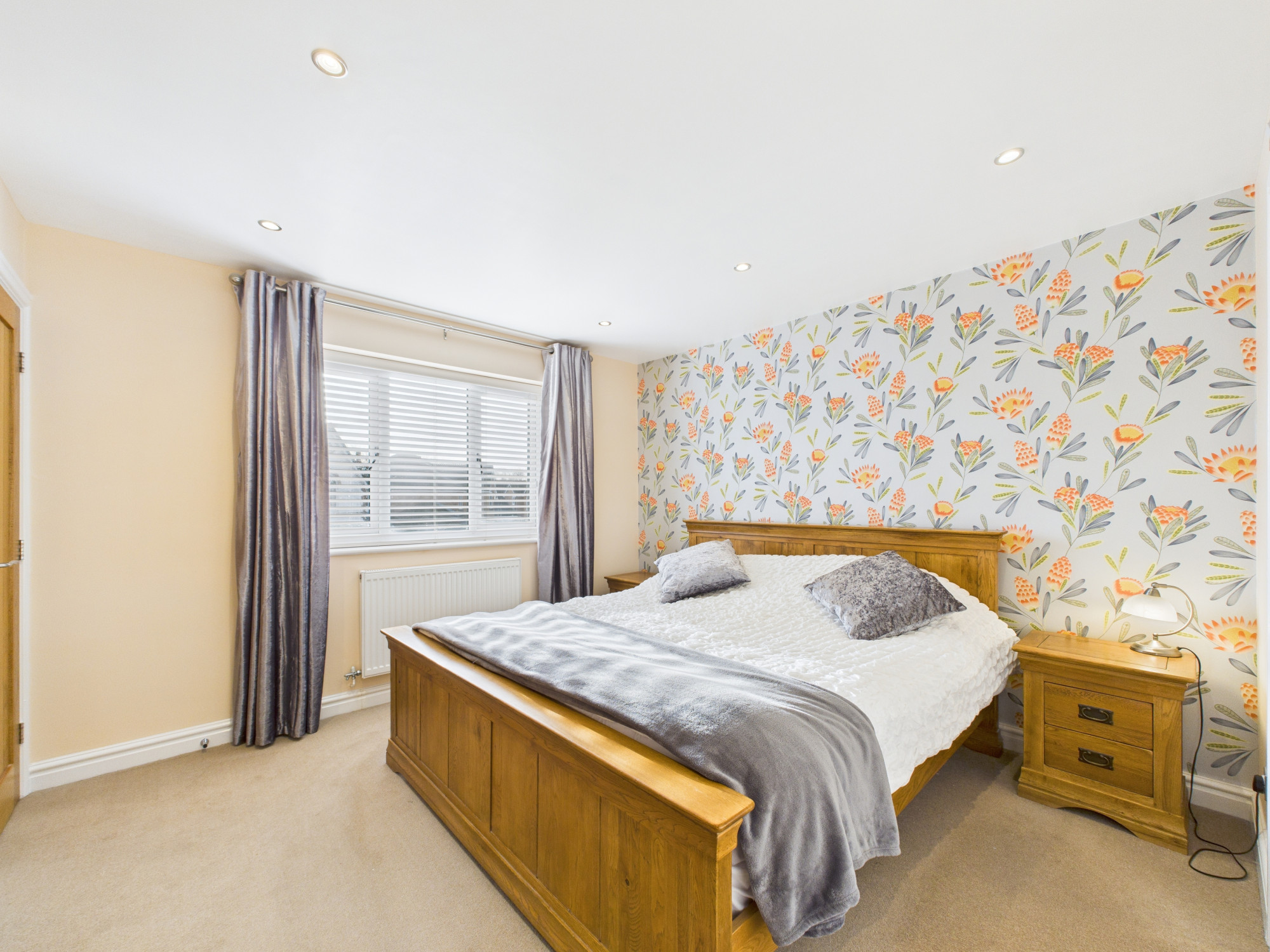 To the first floor, the accommodation comprises four well-proportioned bedrooms, with the principal bedroom benefitting from its own en-suite facility. A stylish four-piece family bathroom suite completes the upper level.