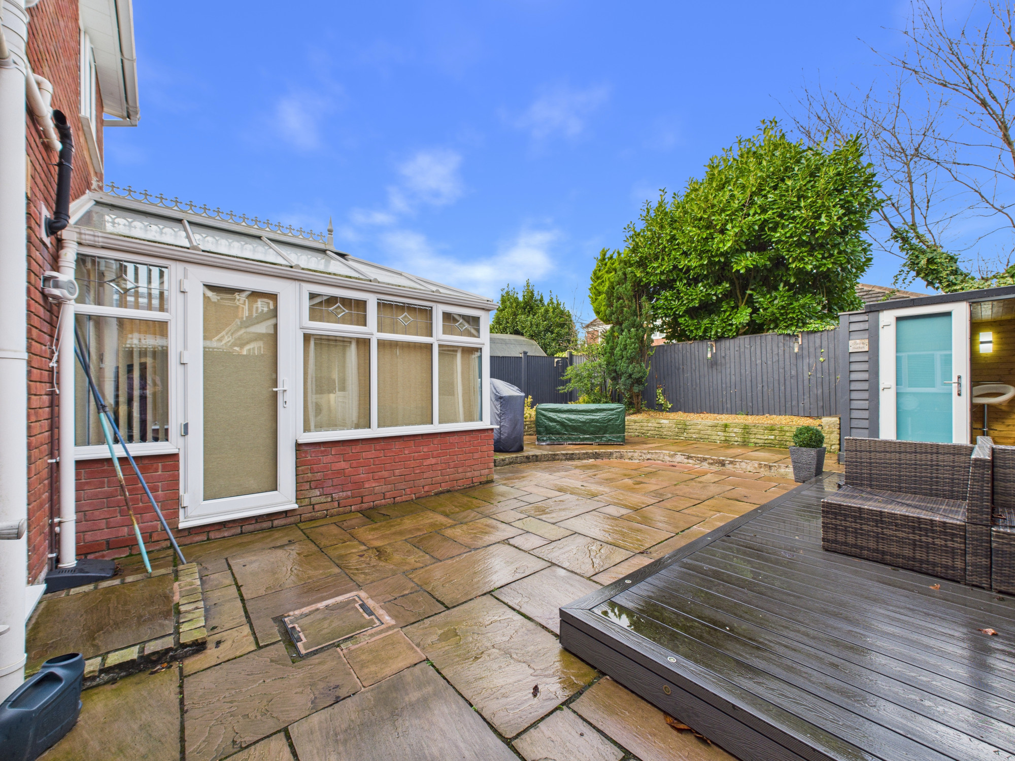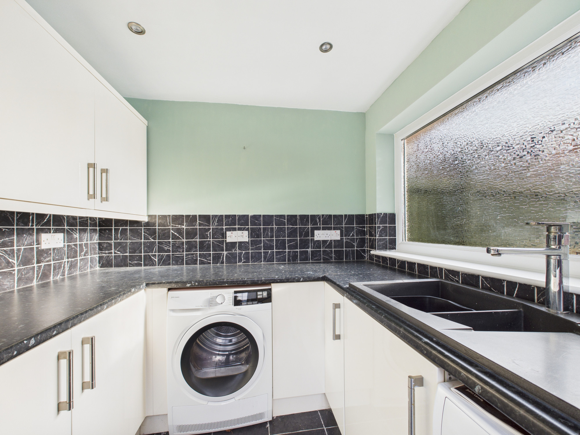 Externally, the rear of the property has been designed with low maintenance in mind, featuring a paved patio seating area which is perfect for alfresco dining and entertaining during the warmer months. The converted detached garage has been cleverly adapted to include a utility area with wall and base units and space for white goods, while also incorporating a fantastic outdoor bar area, creating an excellent space for hosting family and friends. The enclosed rear garden offers a safe and private environment for children and pets.