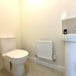 Upon entering, the welcoming hallway immediately sets the tone with its light and airy feel. To the right, a generously sized living room provides a perfect space for relaxing or entertaining, while to the left, a convenient downstairs toilet adds practicality for modern family living.