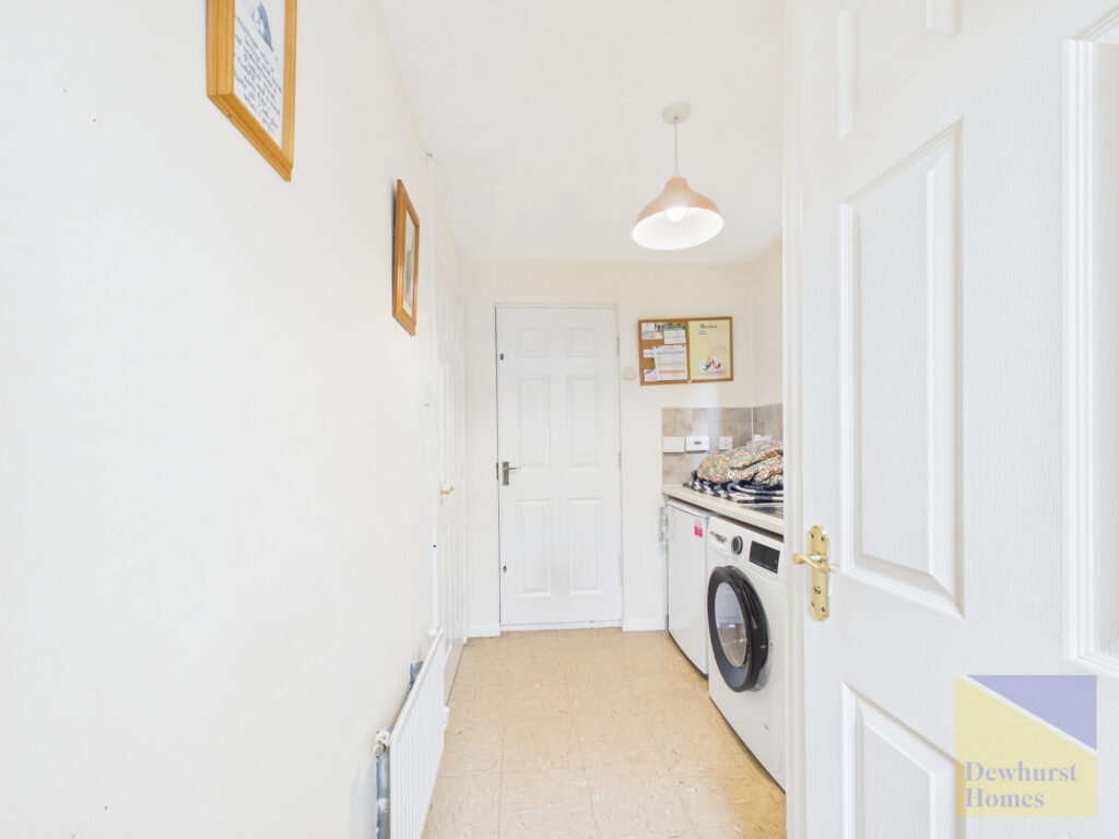 The ground floor welcomes you with a bright and spacious lounge featuring an attractive bay window, allowing plenty of natural light to fill the room, which leads through to a separate dining room, which benefits from patio doors opening onto the rear garden, creating a seamless flow between indoor and outdoor living. The kitchen is well proportioned and provides access to a separate utility room, offering additional storage and practicality, along with a convenient downstairs WC. The property also benefits from an integral garage, providing further storage or secure parking.