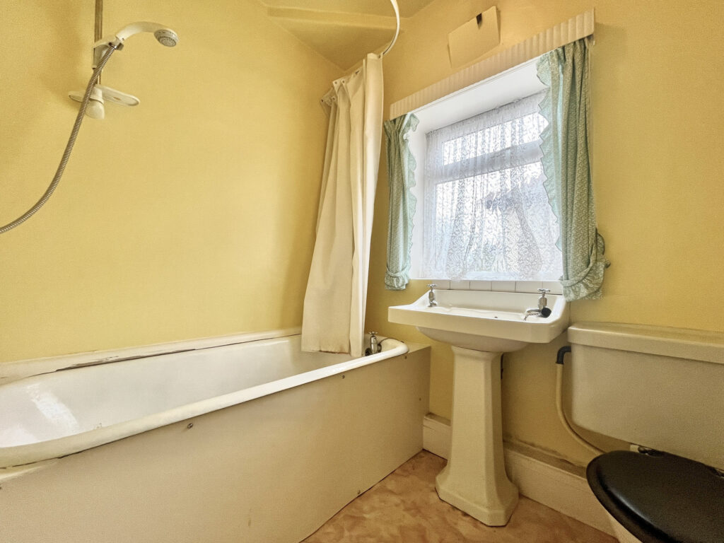 Upstairs, the property offers three well-proportioned bedrooms and a family bathroom, ready for refurbishment to suit modern tastes.
