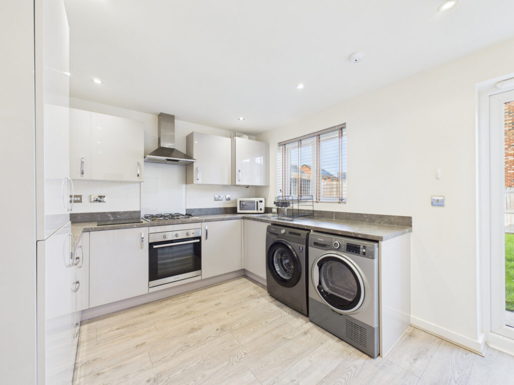 The modern fitted kitchen is both smart and practical, perfect for everything from busy weekday dinners to weekend hosting. Just off the kitchen, the bright and well-designed lounge provides a welcoming space for relaxing, entertaining, or unwinding at the end of the day. Step outside and you'll find a generous rear garden — ideal for summer BBQs, kids at play, or simply enjoying a moment of peace in your own private green space. At the front, a two-car driveway ensures easy parking every time you come home.