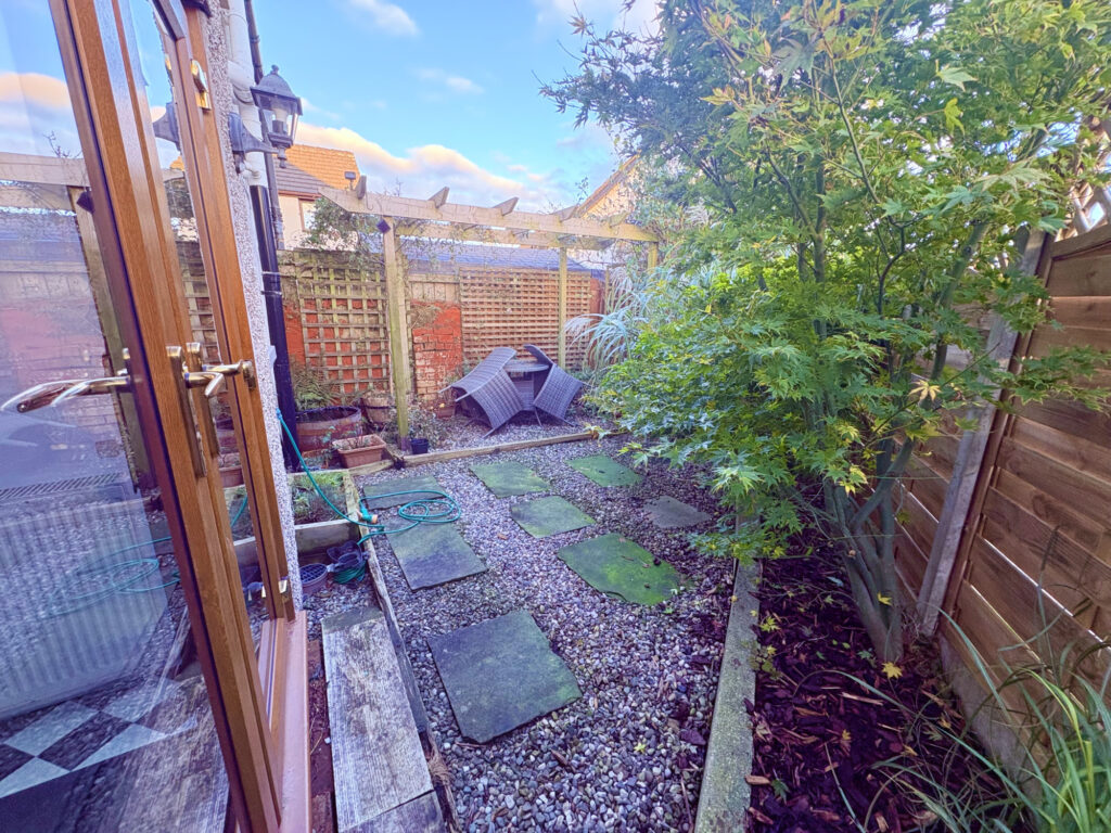 Externally the garage can be accessed from the lounge or via an up and over door with power, light and water available. The wall mounted central heating boiler is also located here. To the front of the property is a lawn garden area complete with shrubbery boarders encompassed within a privet hedge along with a spacious driveway with wrought iron gates providing that added privacy. To the rear is a low maintenance patio style enclosed garden with raised beds and timber pergola.