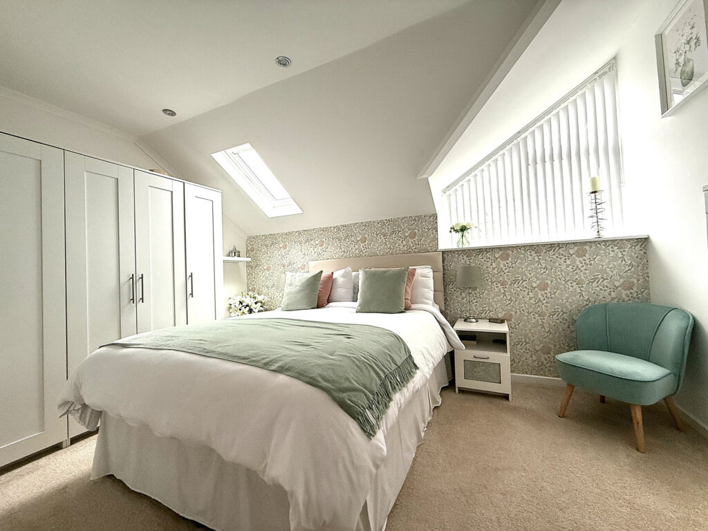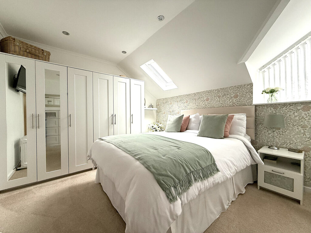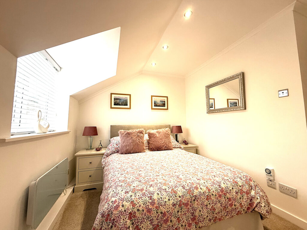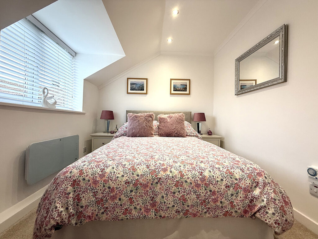 As you ascend the stairs to the first floor, you’ll find this charming space, where every room and the loft await your exploration. Let’s start with Bedroom One, it's such a lovely spot With its extended window and a Velux window up top, this room is practically drenched in sunlight, making it feel bright and inviting. Perfect for lazy mornings or a peaceful night's sleep. Then there’s Bedroom Two, which doesn’t skimp on space either. It’s double-sized and comes with a cute storage nook and a handy storage cupboard. Whether you need a place for clothes, books, or that collection of board games, you’ve got options. The shower room is beautiful. You’ll love the double walk-in shower with a sleek glass screen. Imagine stepping in after a long day, the heated towel rail is a nice touch, keeping things cozy. Plus, there's a modern hand wash basin with a mixer tap and storage underneath, all set against complimentary tiling that adds a splash of style.