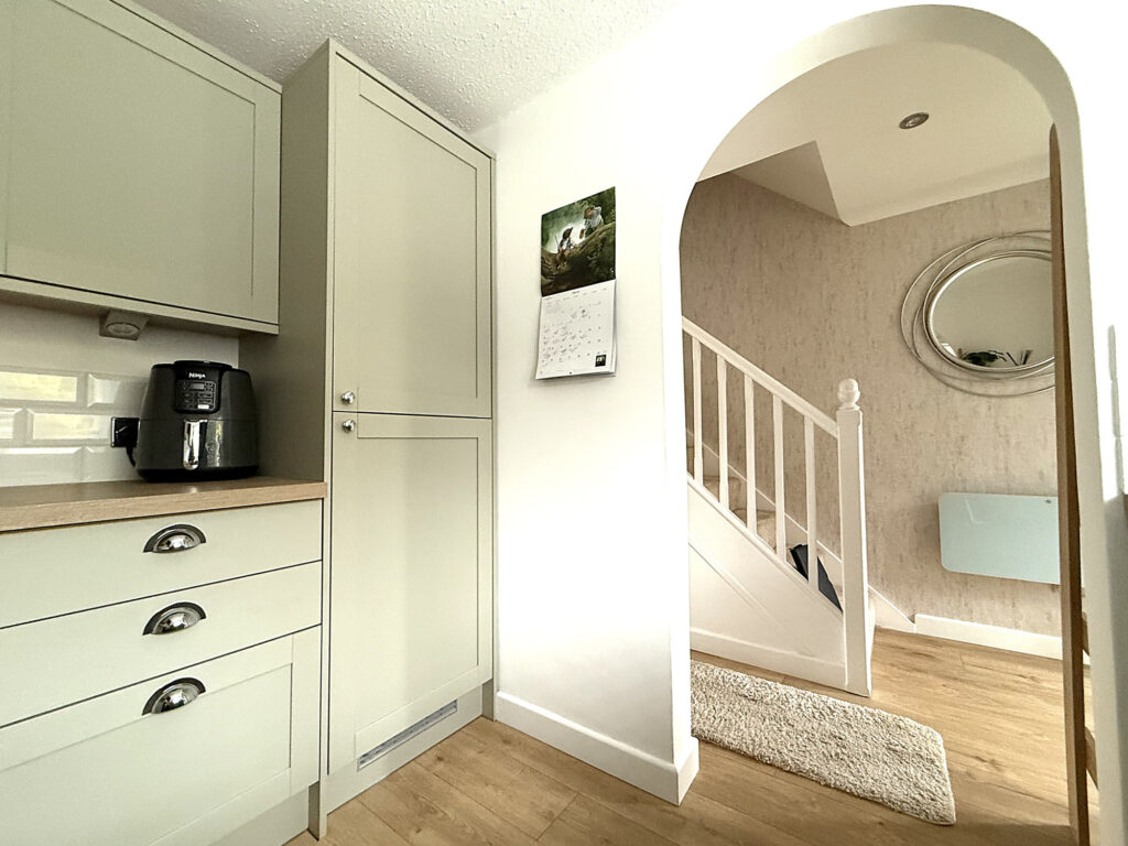 Upon arrival you’re greeted by a charming communal courtyard that adds a lovely touch to the front of the property. Plus, you’ve got your very own outdoor space, perfect for sipping your morning coffee or enjoying a book in the sun. The pathway leads you right to the front door, where you’re welcomed into a warm and inviting entrance hallway. It’s the kind of space that instantly feels like home. From here, you can easily access all the ground floor rooms, making it super convenient for everyday living. The good-sized lounge is filled with natural light pouring in through the patio doors. Whether it’s binge watching your favorite shows or hosting friends, this space is just right for it all. And don’t worry about storage, there’s handy under stairs storage to keep everything neat and tidy. Now, let’s talk about the kitchen! This beautiful, modern space comes complete with integrated appliances and quality upgrades that make cooking a joy. Whether you’re whipping up a quick dinner or experimenting with new recipes, you’ll love spending time in this kitchen.