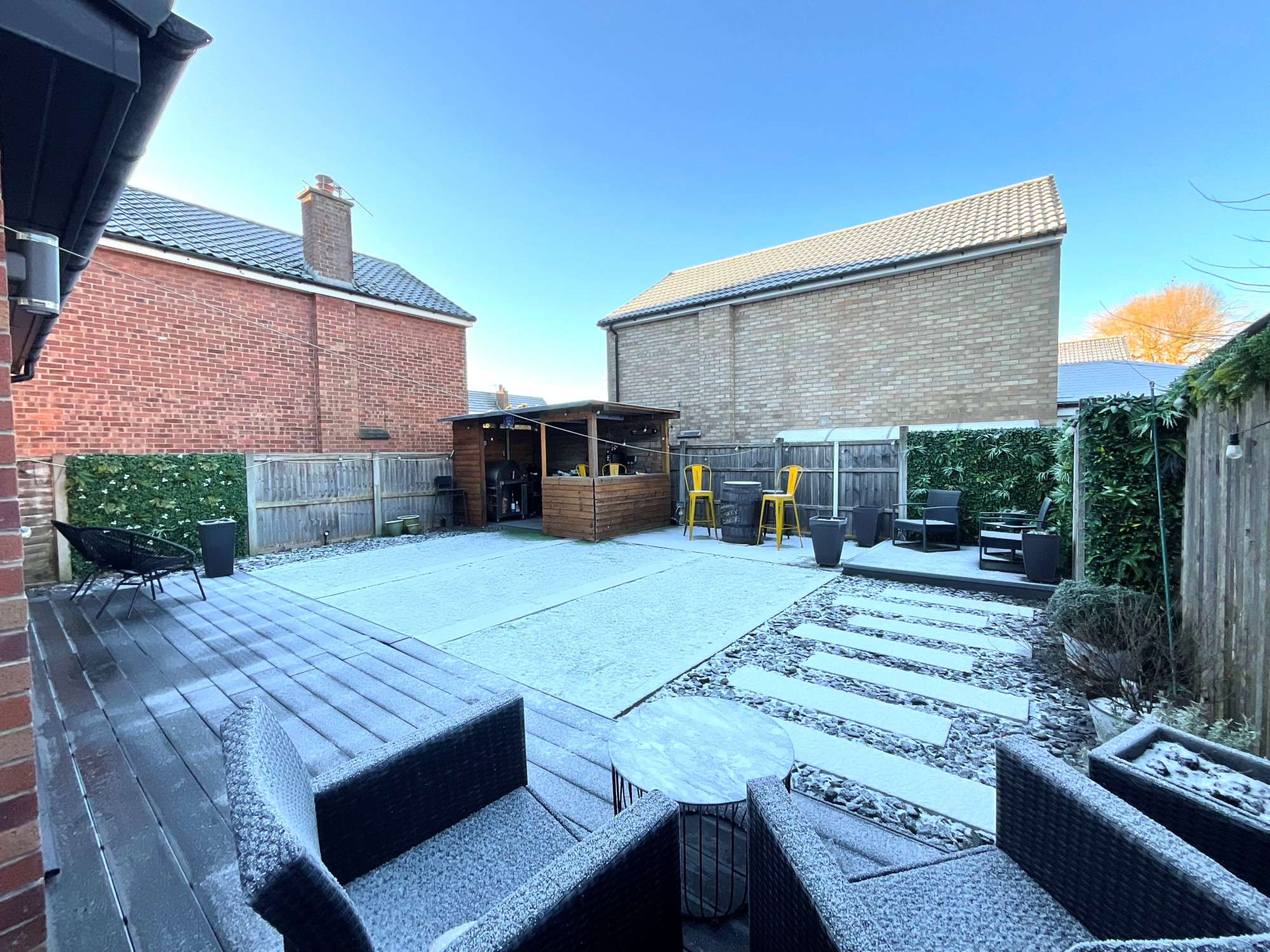 Externally, the property is just as impressive. The front is beautifully finished with slate and porcelain tiling, alongside a driveway providing off-road parking. To the rear, the landscaped garden has been thoughtfully designed for low maintenance and year-round enjoyment, featuring artificial grass, porcelain patio tiles, composite decking and a superb bar area complete with heating and electricityβperfect for entertaining.
