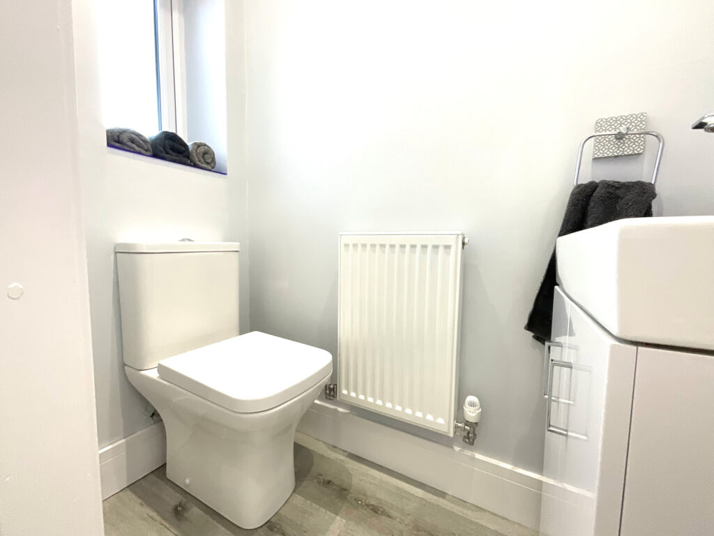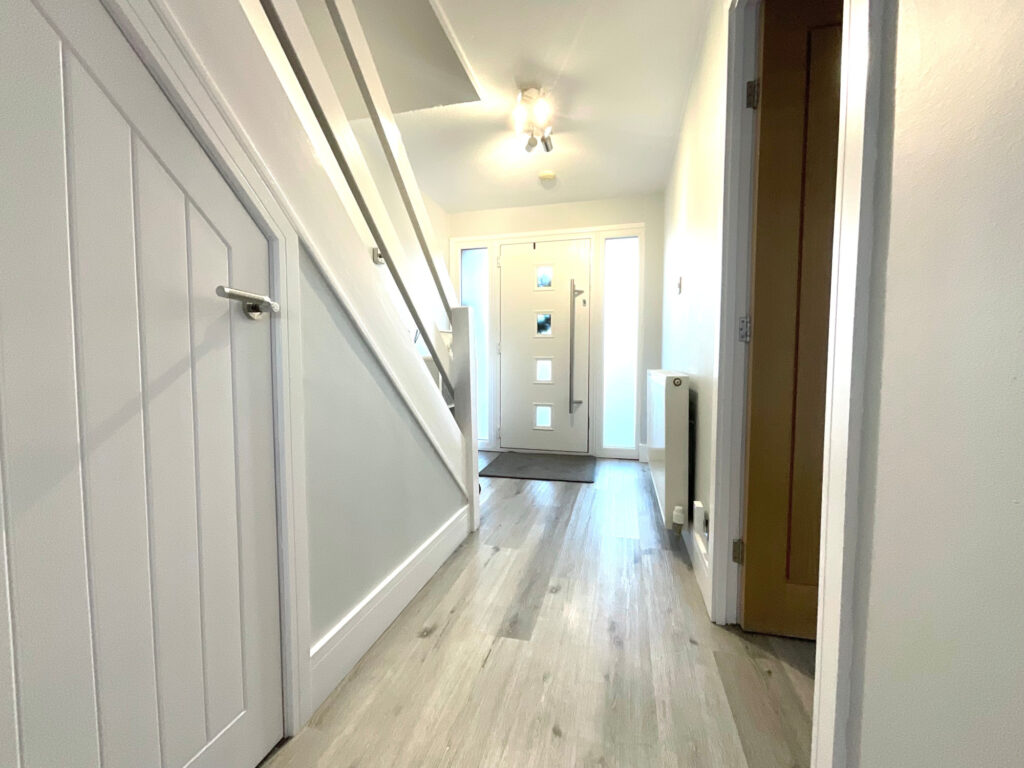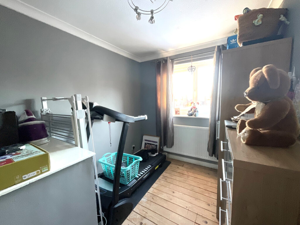 To the first floor, the accommodation continues to impress with two generous double bedrooms, the principal bedroom benefitting from fitted storage, alongside a well-proportioned single bedroom ideal for a child’s room, home office or nursery. The modern three-piece shower room is fitted with a stylish suite, including a spacious corner shower. A loft space provides further useful storage.