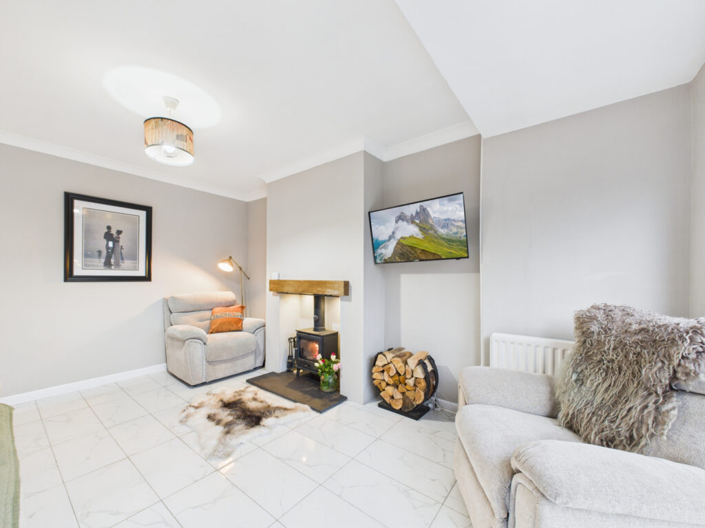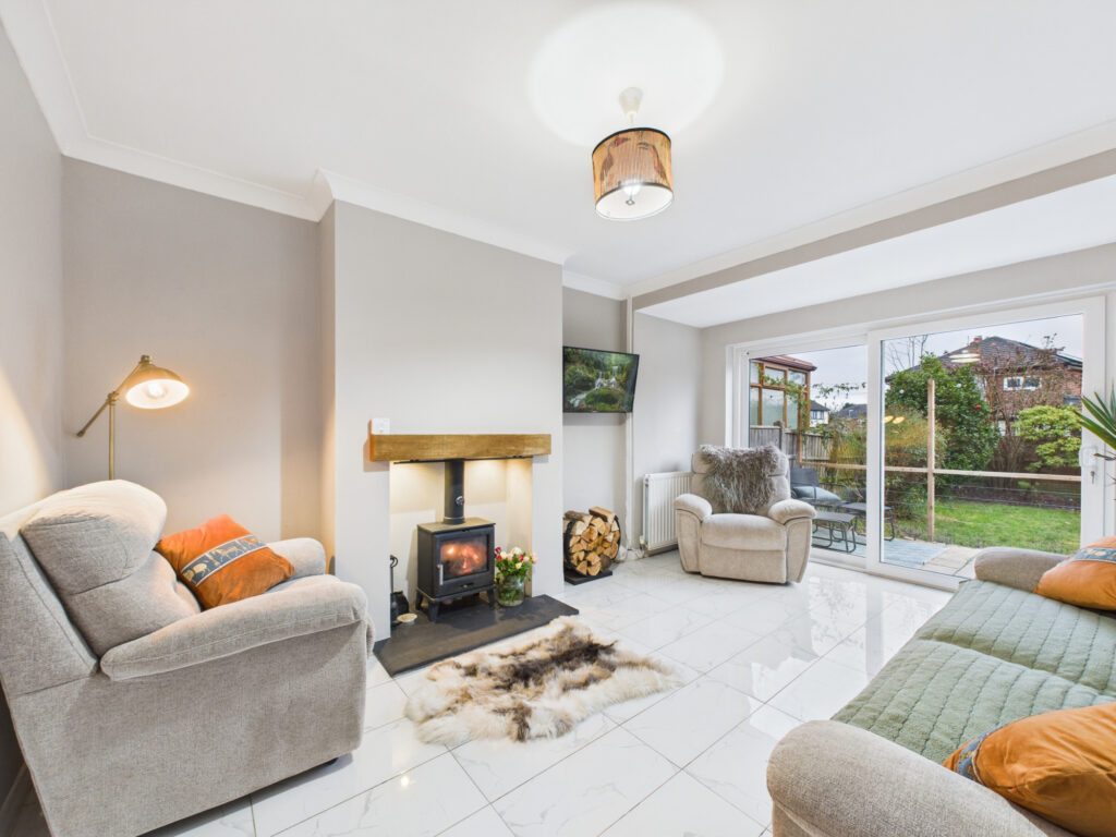 Both reception rooms are generous in size and offer flexible living space to accommodate a range of furniture arrangements. The rear living room features a charming log burner as a focal point and benefits from sliding doors which open onto the sunny-aspect rear garden, allowing natural light to flood the space and providing seamless indoor-outdoor living.