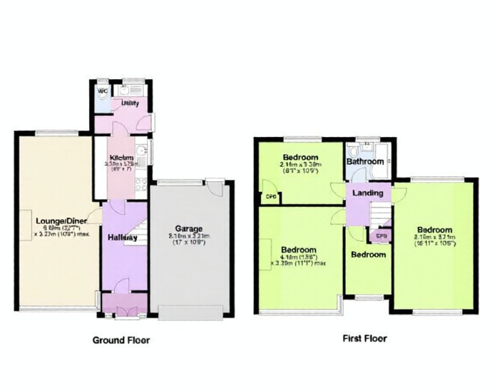 The ground floor accommodation includes a welcoming porch, entrance hallway, a bright and airy through lounge–diner, a fitted kitchen, a useful utility room, and a separate WC.