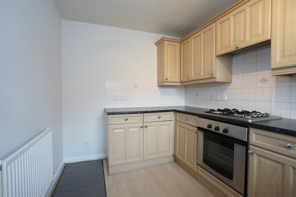 The kitchen features plenty of wall and base storage units with built in appliances. The living room is a great size with space for multiple pieces of furniture and access to the rear garden.