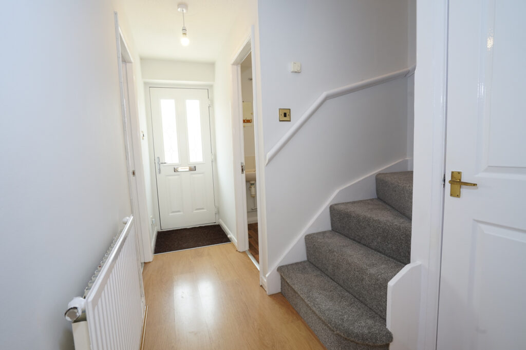 Upon entering the property the hall way provides access to the WC, Under stairs storage cupboard, Kitchen and living room.