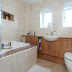 To the first floor there are four double bedrooms. Bedroom Three features a walk in closet. These bedrooms are serviced by a three piece family bathroom with shower over bath, toilet, and wash hand basin.