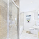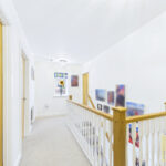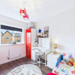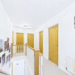 Upstairs, a spacious landing leads to three generously sized double bedrooms. Each room benefits from upgraded wardrobes and high-quality finishes, while the principal suite boasts a stylish ensuite. The family bathroom has been upgraded with premium tiling, continuing the home’s luxurious feel. Additional features include fitted blinds throughout, solid oak internal doors, and a boarded and insulated loft providing excellent storage.