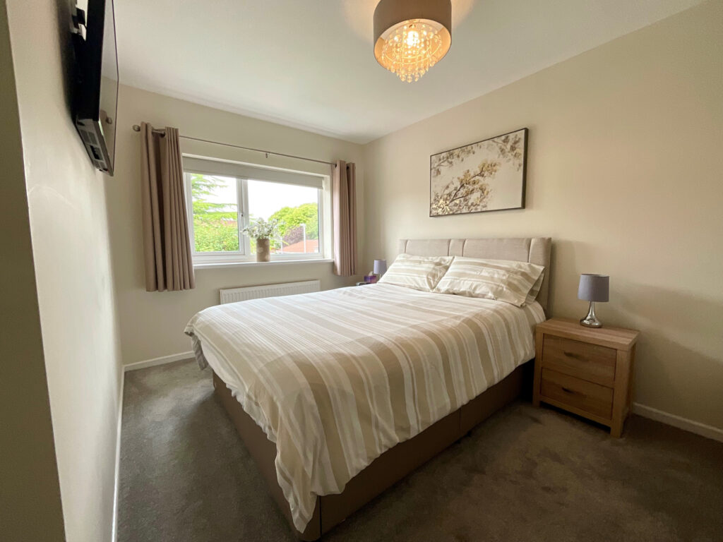 Upstairs, you will find three well-proportioned bedrooms. The main bedroom boasts fitted wardrobes, a built-in dressing table with mirror, while the second double bedroom also offers fitted wardrobes. The third bedroom is a generous single with wardrobe included.